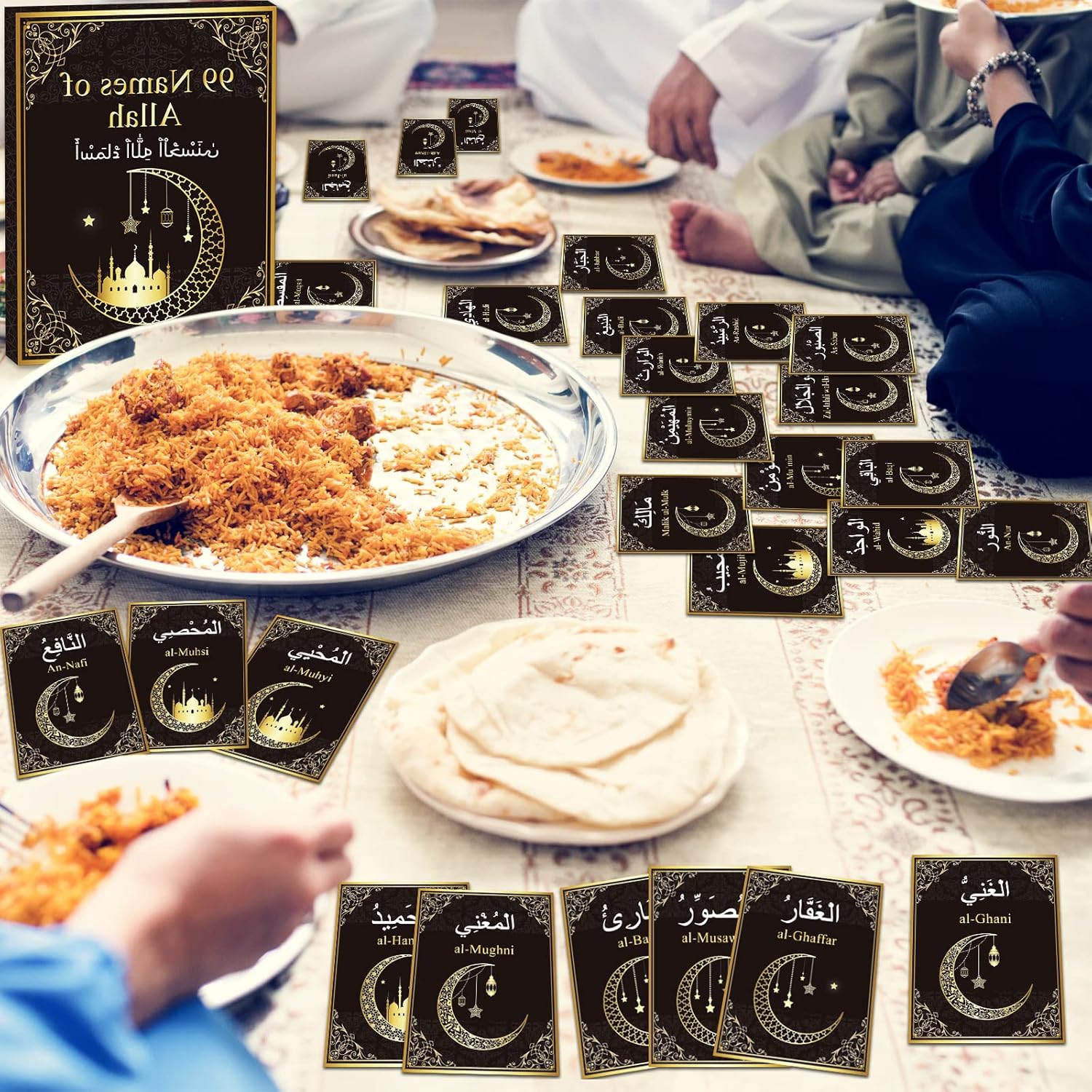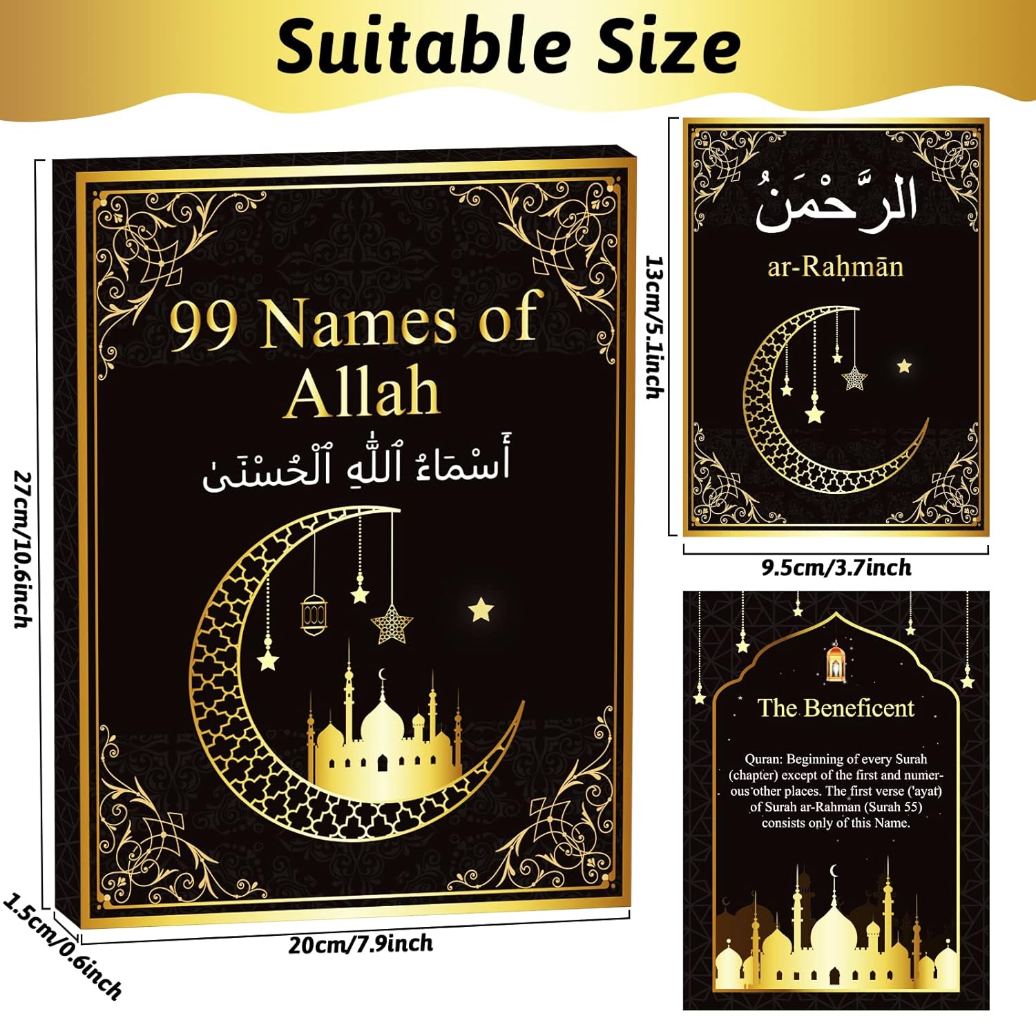 【Exquisite Design】The 99 Names of Allah Flashcards feature a classic black and gold color scheme, adorned with iconic symbols of Ramadan, Eid Al-Fitr, and Eid Al-Adha such as castles, stars, and moons. These vibrant colors and captivating images are sure to motivate you in your learning journey, as you discover and absorb the rich meanings behind each of Allah’s 99 names.
