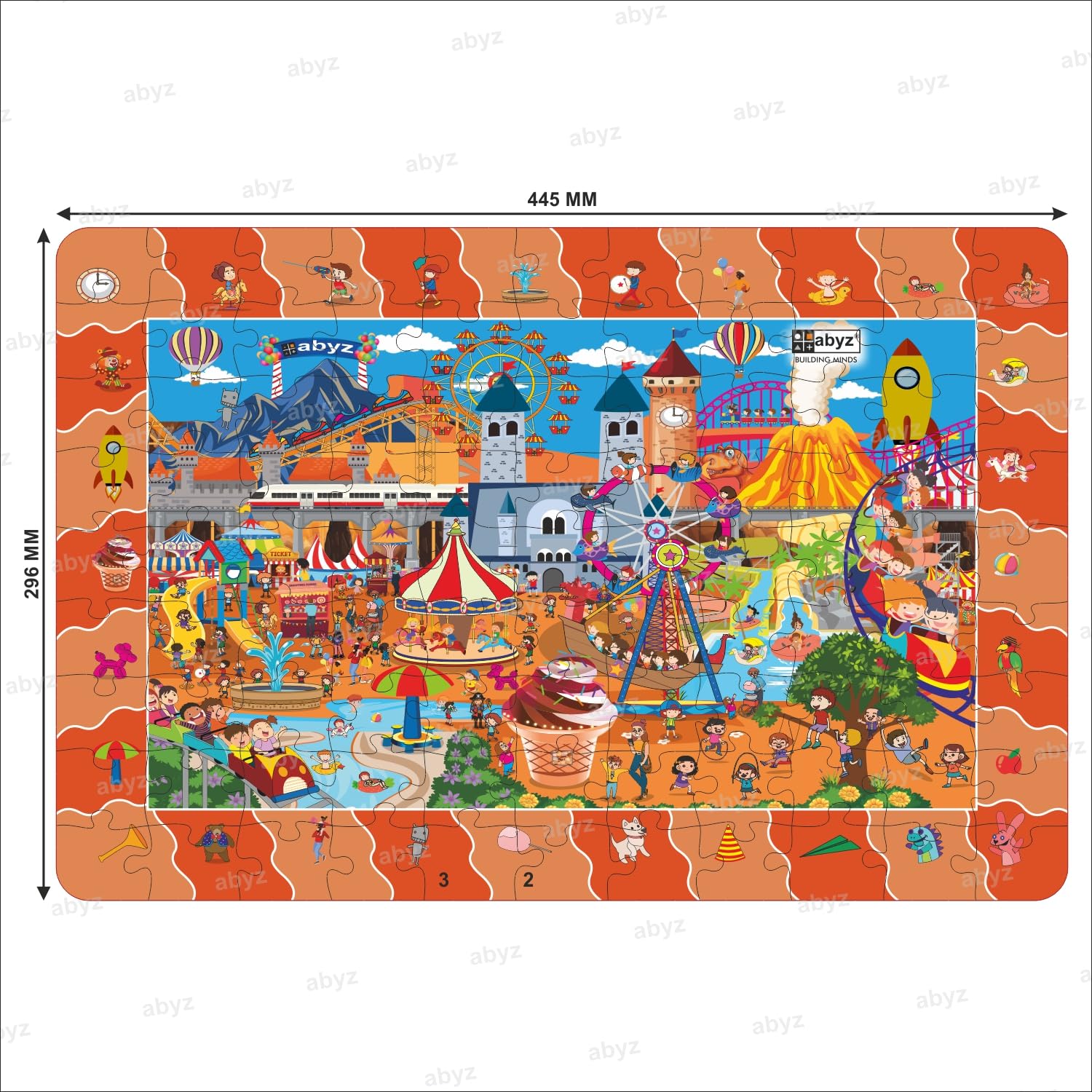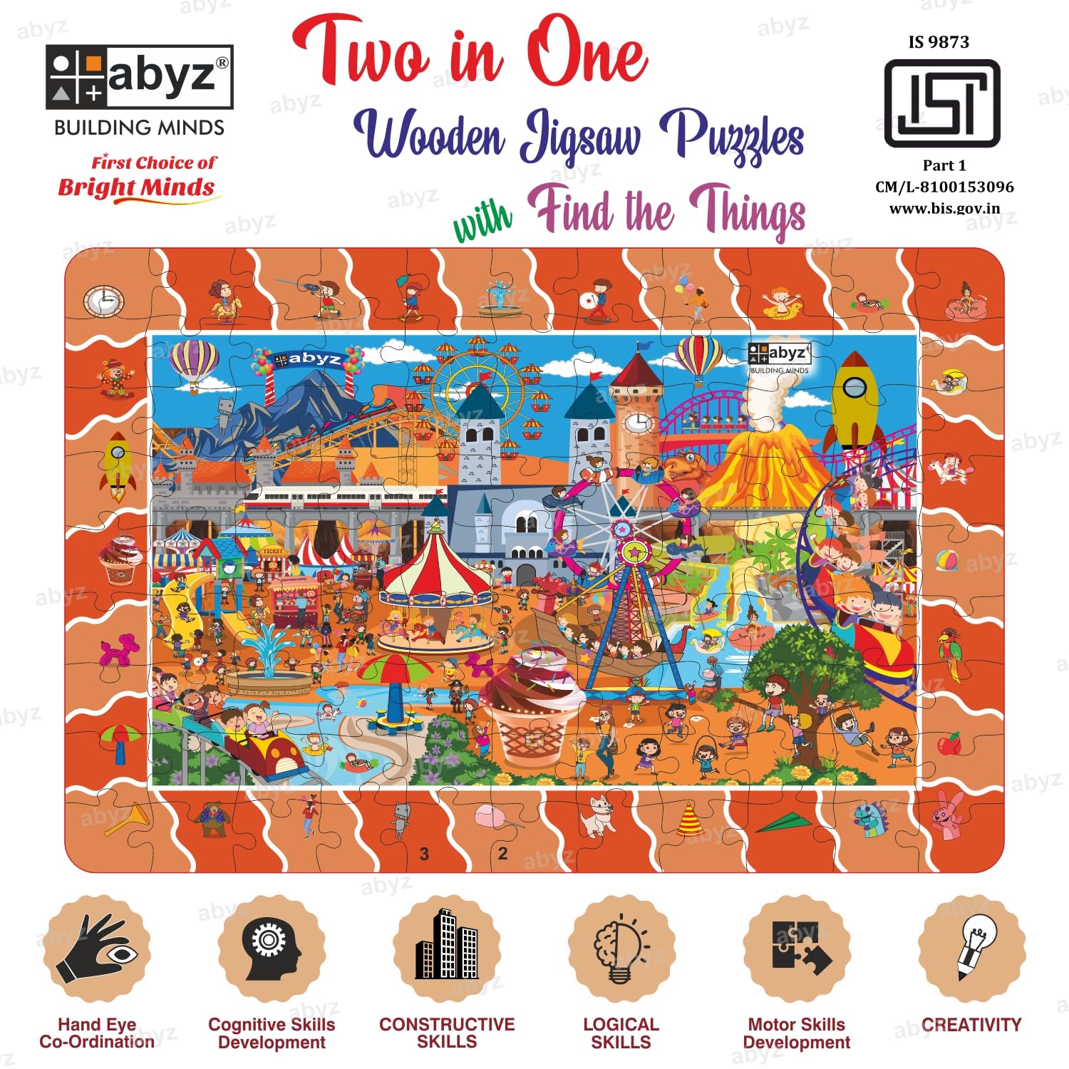 𝗥𝗘𝗖𝗢𝗠𝗠𝗘𝗡𝗗𝗘𝗗 𝗔𝗚𝗘 – Tailored for children aged 4 to 9, the ABYZ AMUSEMENT PARK Wooden Jigsaw Puzzle offers an immersive and dynamic alternative to screen time, providing a rich and engaging playtime experience.