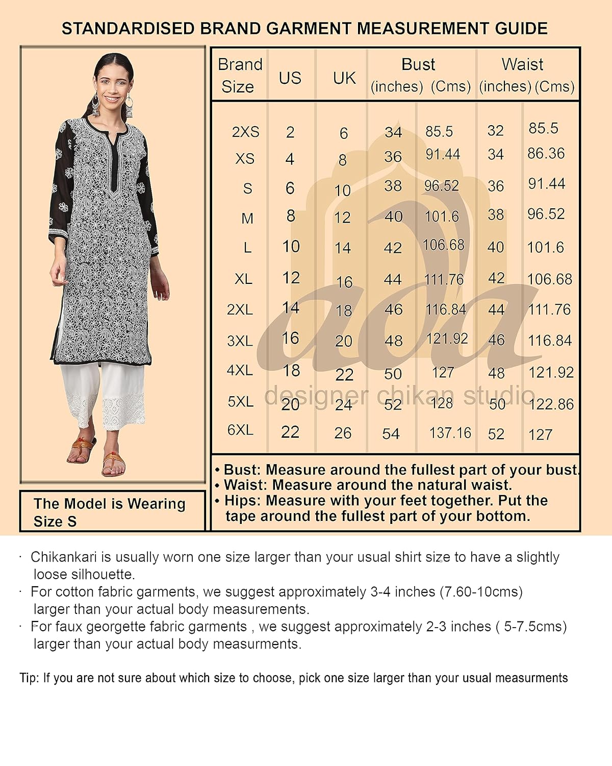 Touch and Feel – Cool and Soothing Sleeves – Full Refresh your mood with this red coloured Faux Georgette kurti. It is styled with chikan stitches , such as , `Ulti Bakhiya’ , `Ghas patti ‘ , `Keel kangan’ and `phanda’ using multicoloured cotton threads. It can be clubbed with matching white pumps in any outings with denims or palazzos . Disclaimer: This product is hand embroidered and may have slight dissimilarities that are a natural outcome of the human involvement in the process. These minor variations of Stitches/Motifs add to its charm and ensure you have a unique product . At Ada we are dealing with needle craft which is GI mapped and recognized by Trips internationally which ismultiple washed leaving the product free of colour bleeding and shrinkage. Since products are pre washed they cannot match the artificial quote / finish of a factory finish.