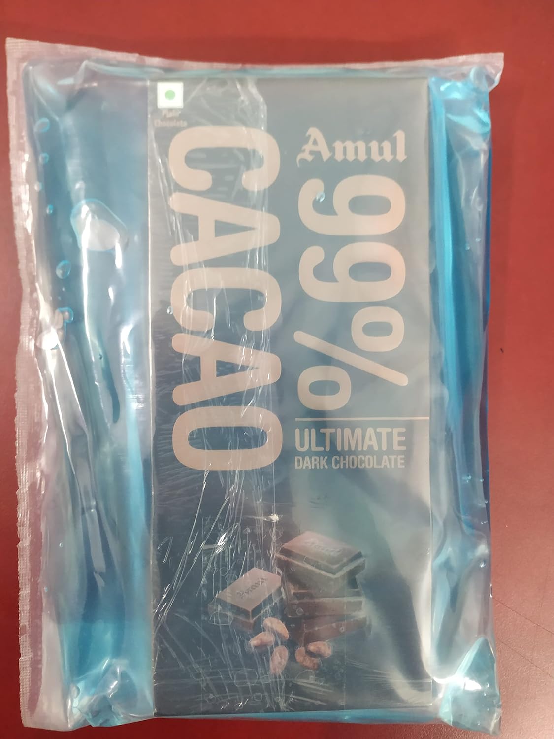 Amul 99% Cacao is an exceptional chocolate experience that delights you with the full-bodied rich taste & strength of single origin cocoa beans. Best enjoyed nibbled, to truly appreciate the striking notes of fresh, pure cocoa. Amul 99% Cacao has zero sugar and is a delight for extremely dark and bitter chocolate connoisseurs. Try this only if you have enjoyed Amul dark 55%, Amul Bitter 75% and Amul 90% Bitter chocolates. It is really really Bitter and Bitter at its best.