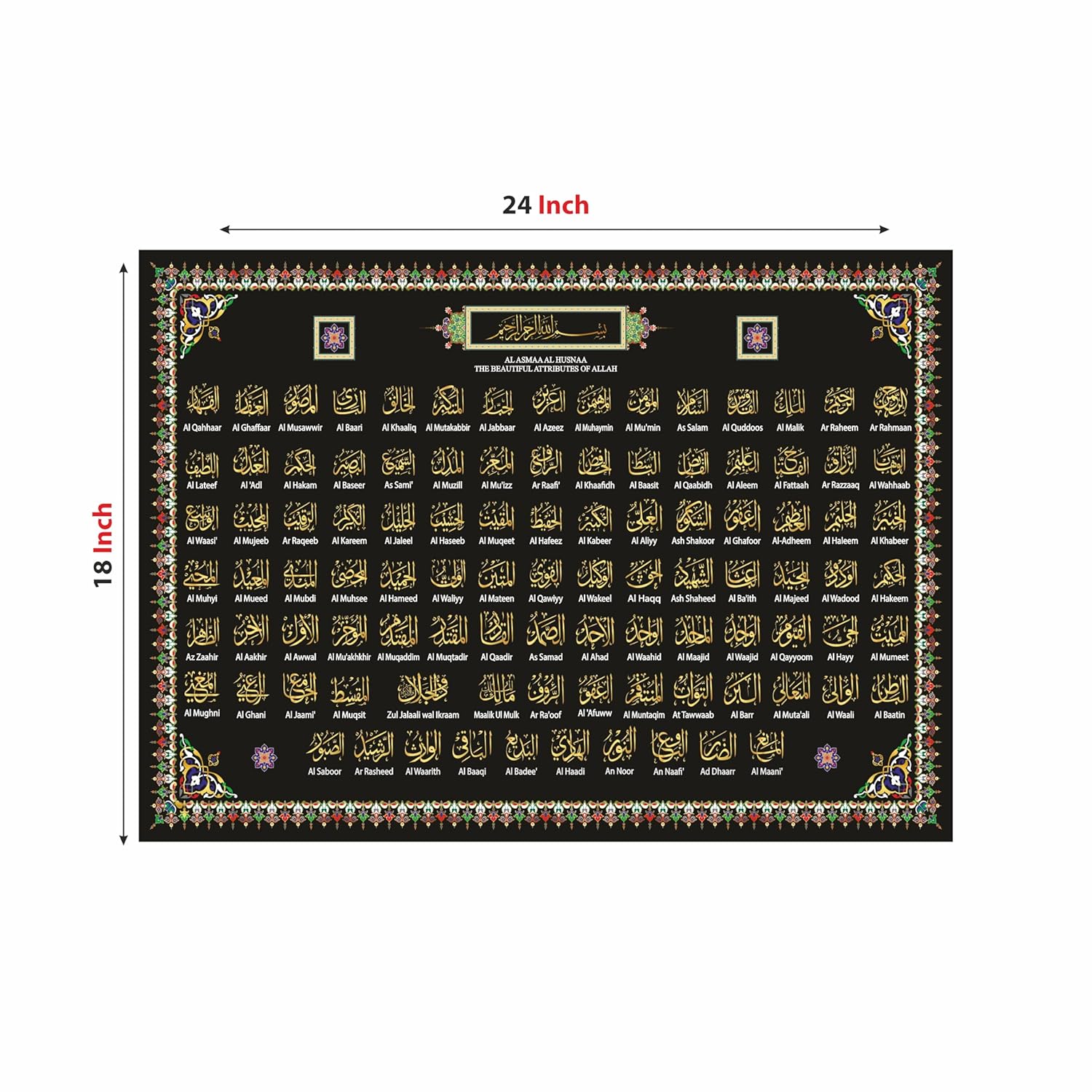 99 Names Of Allah Canvas Without Frame Pearl Finish Authentic by Islamic Scholar Starting From Right To Left . All graphics and artwork are designed on True Color monitors and printed on latest high quality digital printing machines, to satisfy you and provide the best quality products.