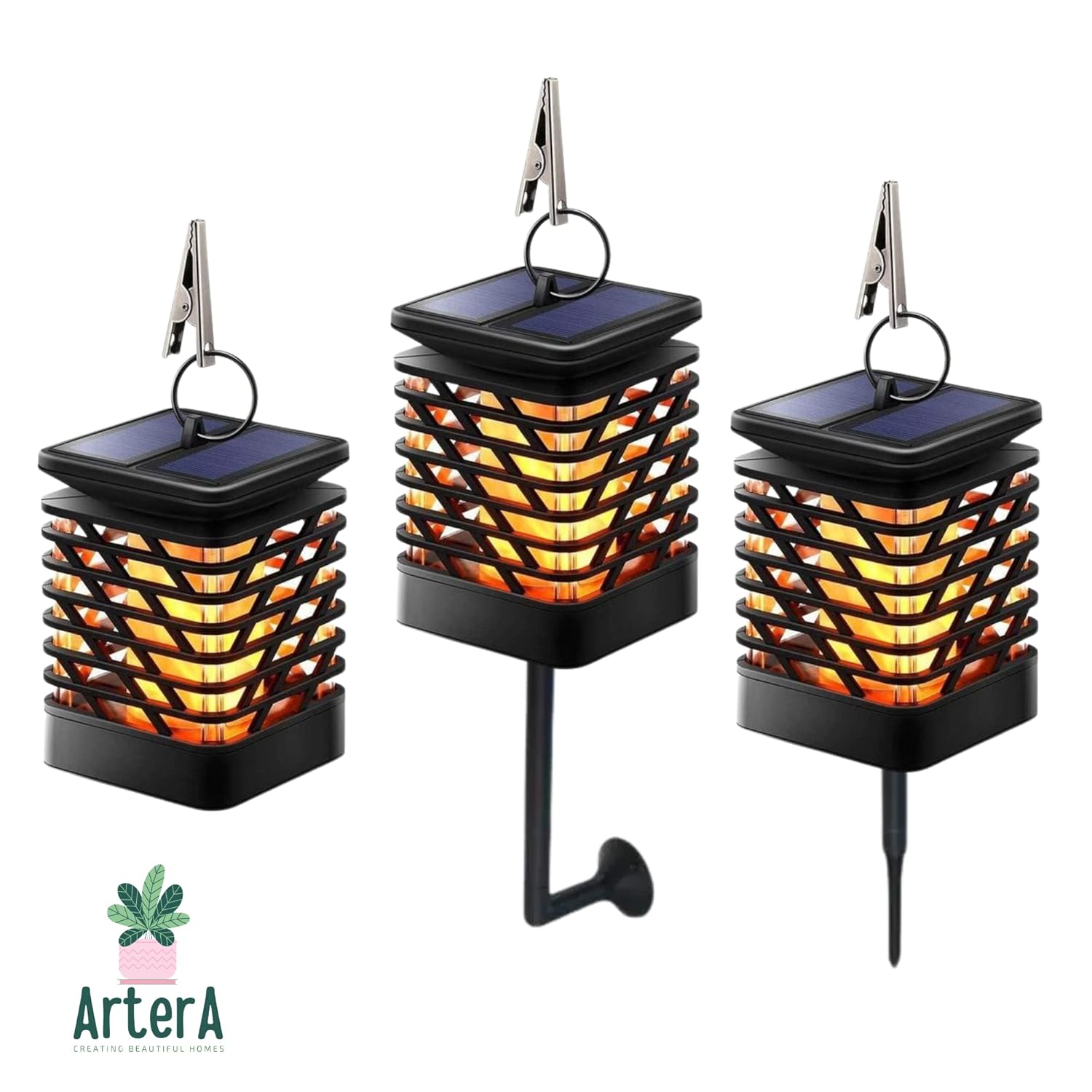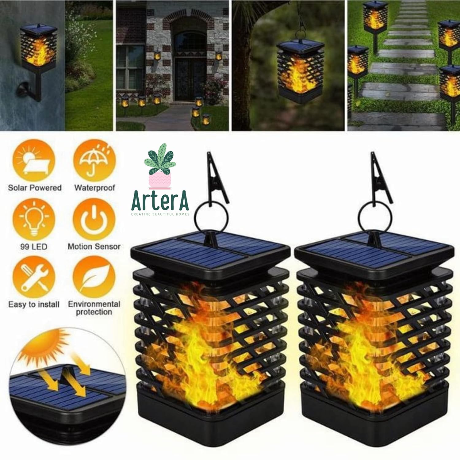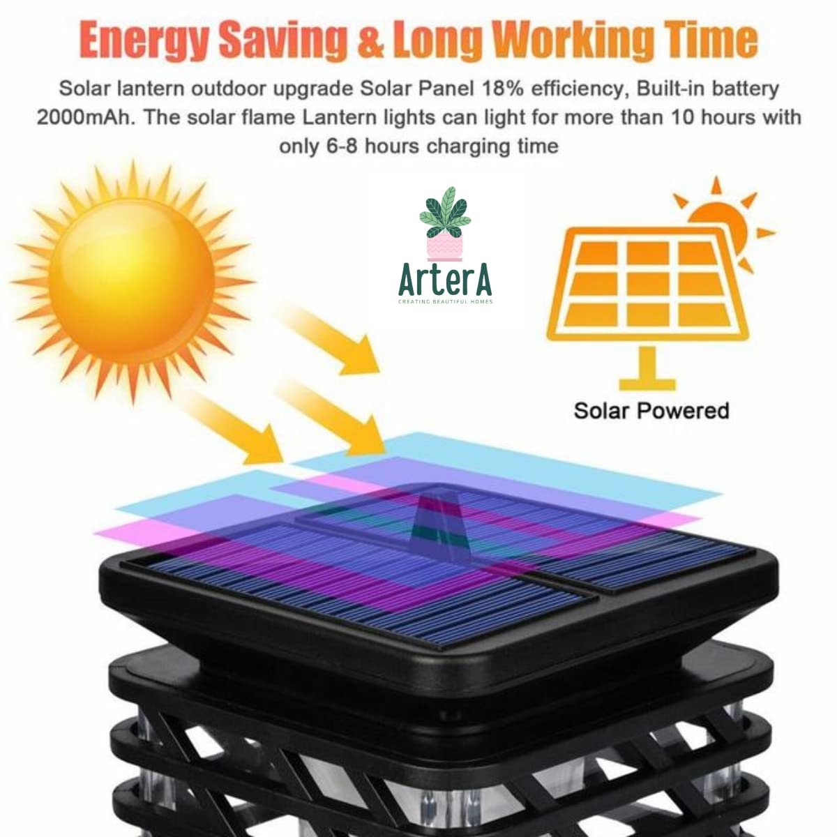 Dancing Solar Lantern Design- ARTERA solar outdoor lights upgrade LED chips, 99 LEDs, It is like looking at a fire to watch the dancing Lamp, helps to create a fantastic and mesmerizing ambiance, solar lights are the best choice for Garden, Patio, Yard, Deck, Umbrella, Porch, Lawn, Tabletop and more decorative.