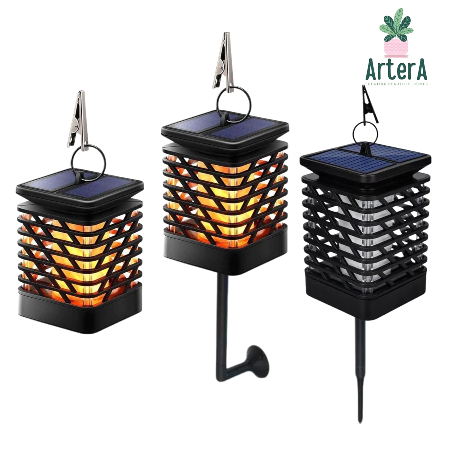 Dancing Solar Lantern Design- ARTERA solar outdoor lights upgrade LED chips, 99 LEDs, It is like looking at a fire to watch the dancing Lamp, helps to create a fantastic and mesmerizing ambiance, solar lights are the best choice for Garden, Patio, Yard, Deck, Umbrella, Porch, Lawn, Tabletop and more decorative.
