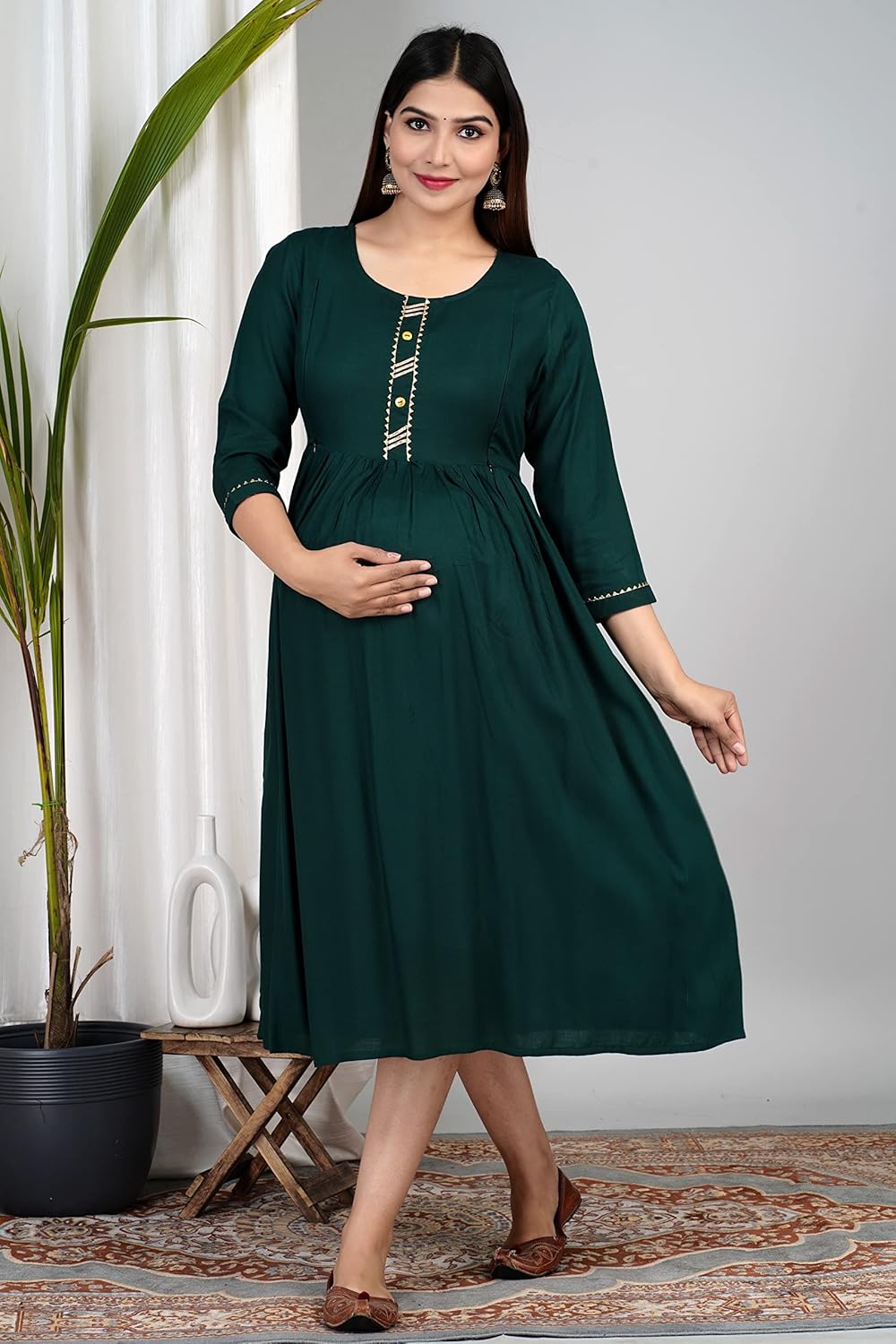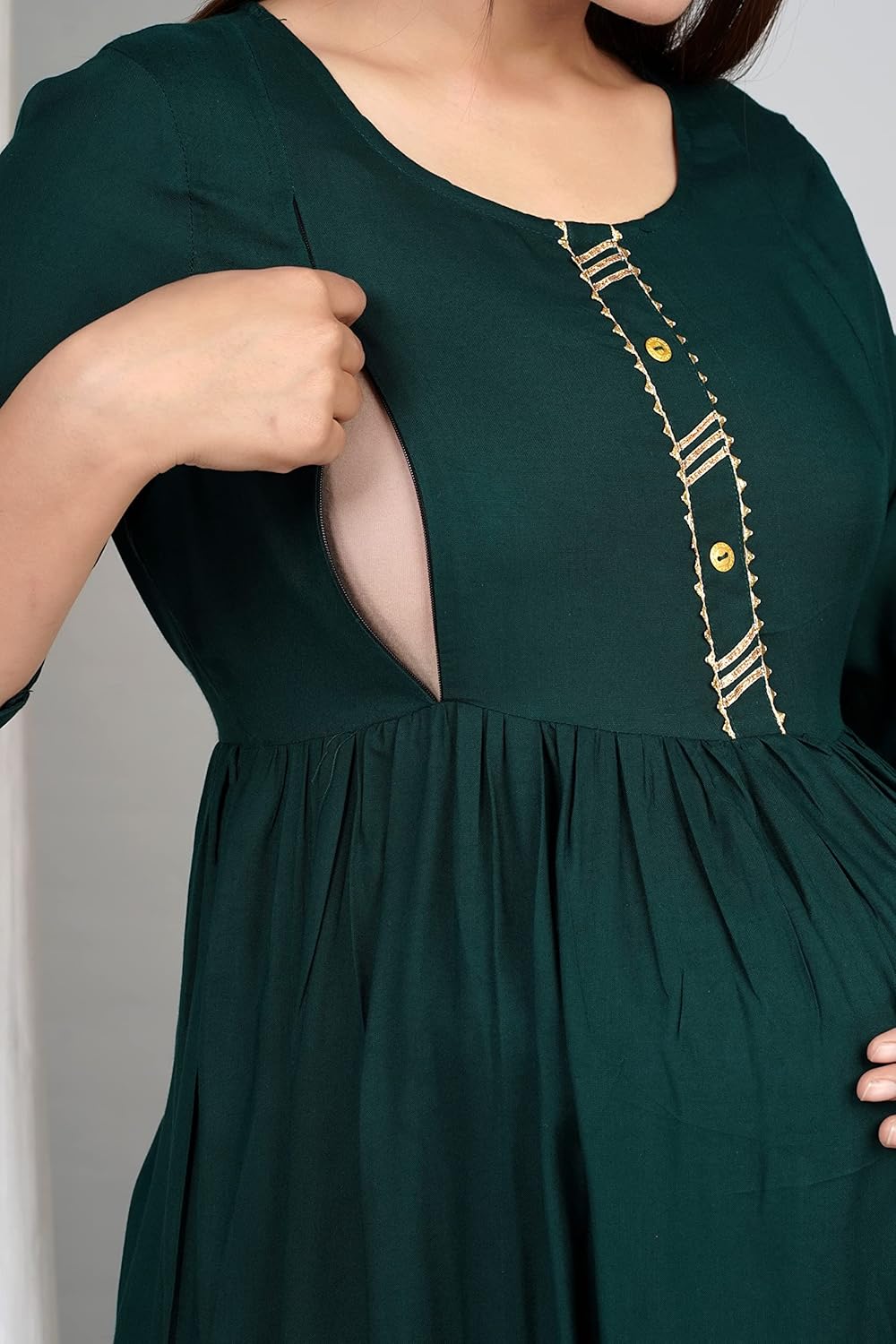 The AVI FAMILE 99 Women’s Rayon Printed Flared/A-Line Maternity Feeding Kurta with Zippers is a versatile and stylish option for expectant and nursing mothers. Crafted from high-quality rayon fabric, this kurta offers both comfort and breathability, ensuring you feel relaxed throughout the day. Its flared/A-line silhouette provides ample room for your growing belly while offering a flattering fit post-pregnancy. Featuring an eye-catching printed design, this kurta adds a touch of elegance to your maternity wardrobe. The calf-length design strikes the perfect balance between style and practicality, making it suitable for various occasions, whether it’s a casual day out or a formal gathering. One of the standout features of this kurta is the inclusion of zippers, strategically placed for easy nursing access. This thoughtful detail allows you to discreetly and conveniently breastfeed your baby while on the go, without compromising on style or comfort. With its combination of trendy design and functional elements, the AVI FAMILE 99 Women’s Rayon Printed Flared/A-Line Maternity Feeding Kurta with Zippers is a must-have addition to any maternity wardrobe, offering both fashion-forward looks and practicality for new moms.