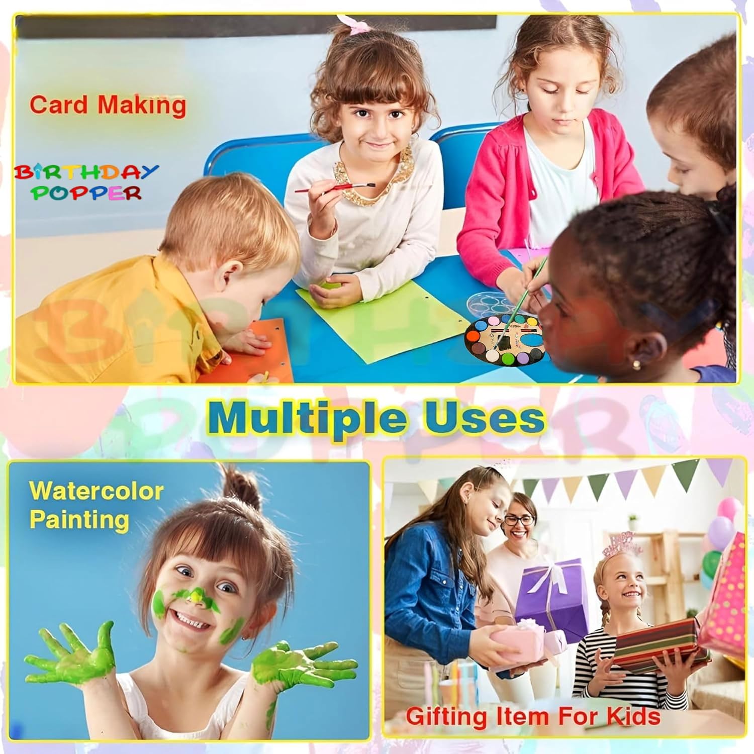 Perfect Return Gifts: These watercolour palettes make excellent return gifts for kids birthday parties. It can be Gifted to 10 Kids. They’re also versatile enough for bulk school supplies or goodie bag stuffers, adding fun and creativity to any occasion!
