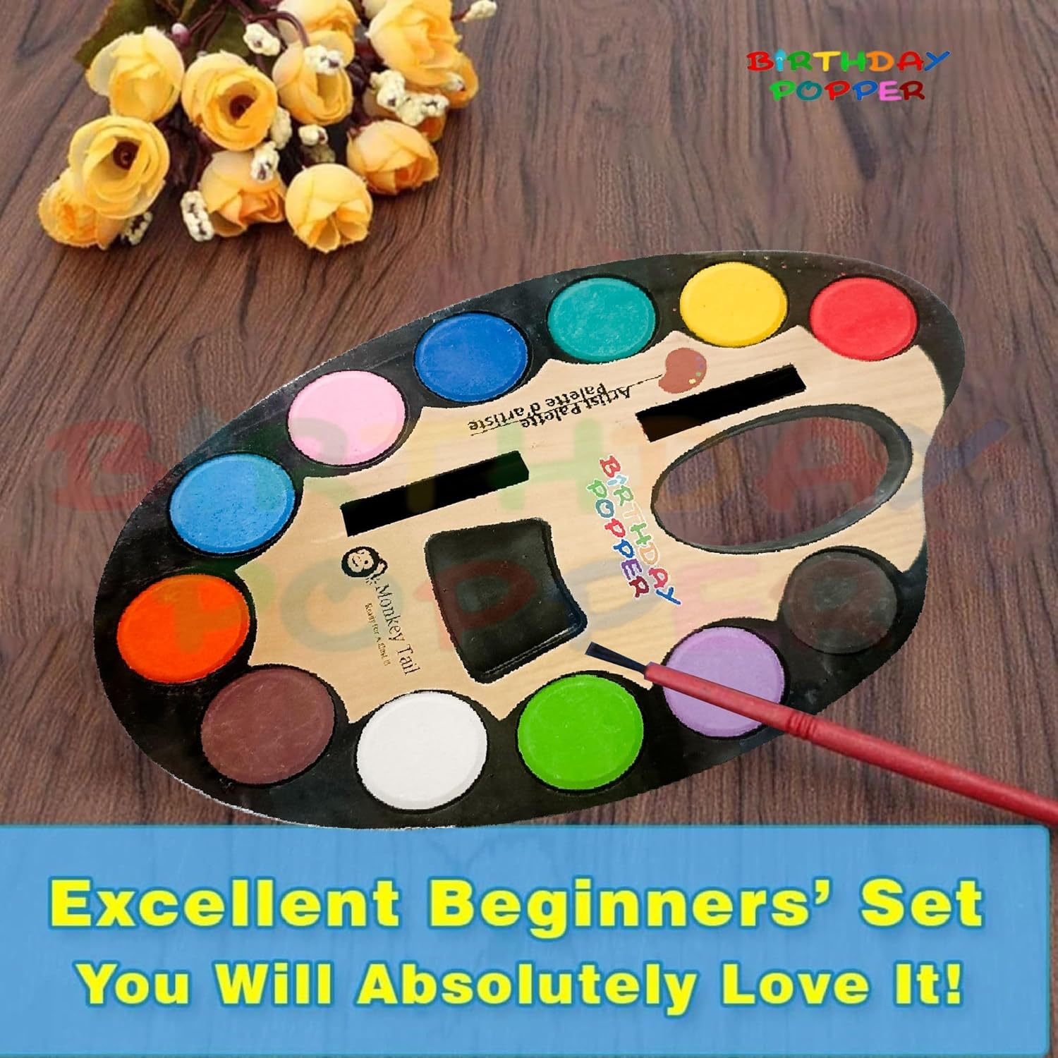 This water colour set comes with a built-in palette and an artist paint brush. Since it is all on one board, you do not have the hassle of storing individual paints or brushes. No spilt paint, no looking for caps and lids. Just wipe it dry and store.