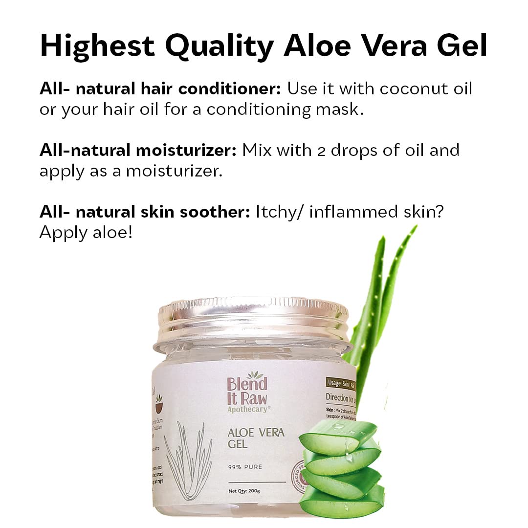NOT 100% BUT 99% PURE: Unlike many Aloe Vera gels which claim to be 100% pure which is impossible, we genuinely claim our Aloe Vera Gel to be 99% pure. Rest 1% is aqua, xanthan gum (plant based natural thickener) & food grade preservative.