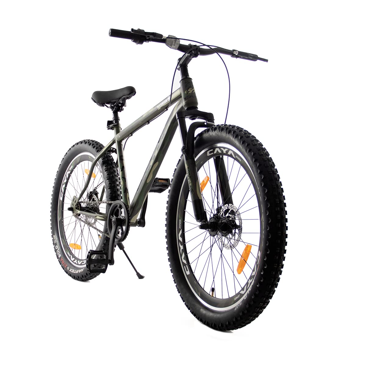 CAYA Warrior 26 army Cycle Bicycle With Semi-Fat 3 inches wide tyres Steel Frame Strong triple Alloy Rims | Dual Disk Brakes & Front Suspension