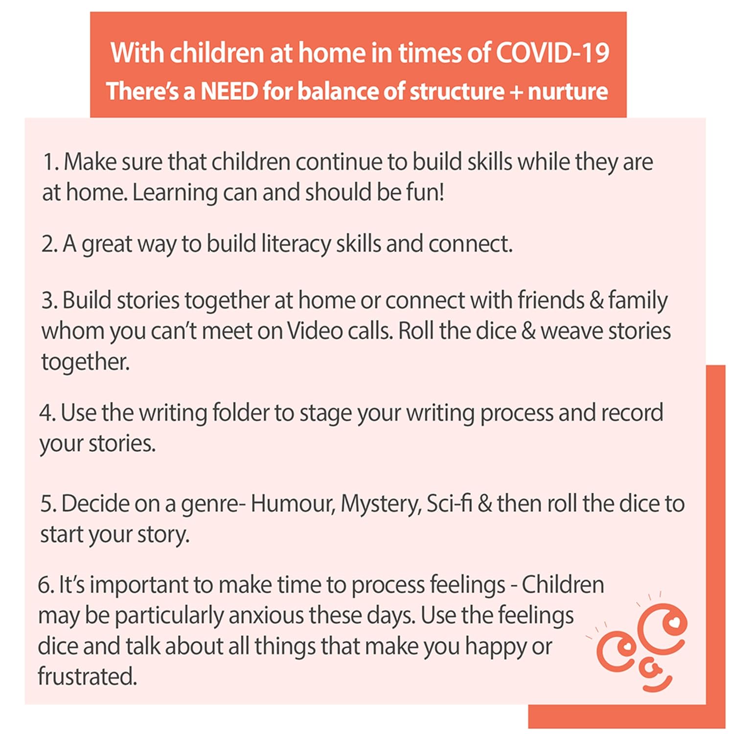 Our set of Storytelling Dice includes feelings dice- A perfect way to get kids to practice adding emotions to their stories.