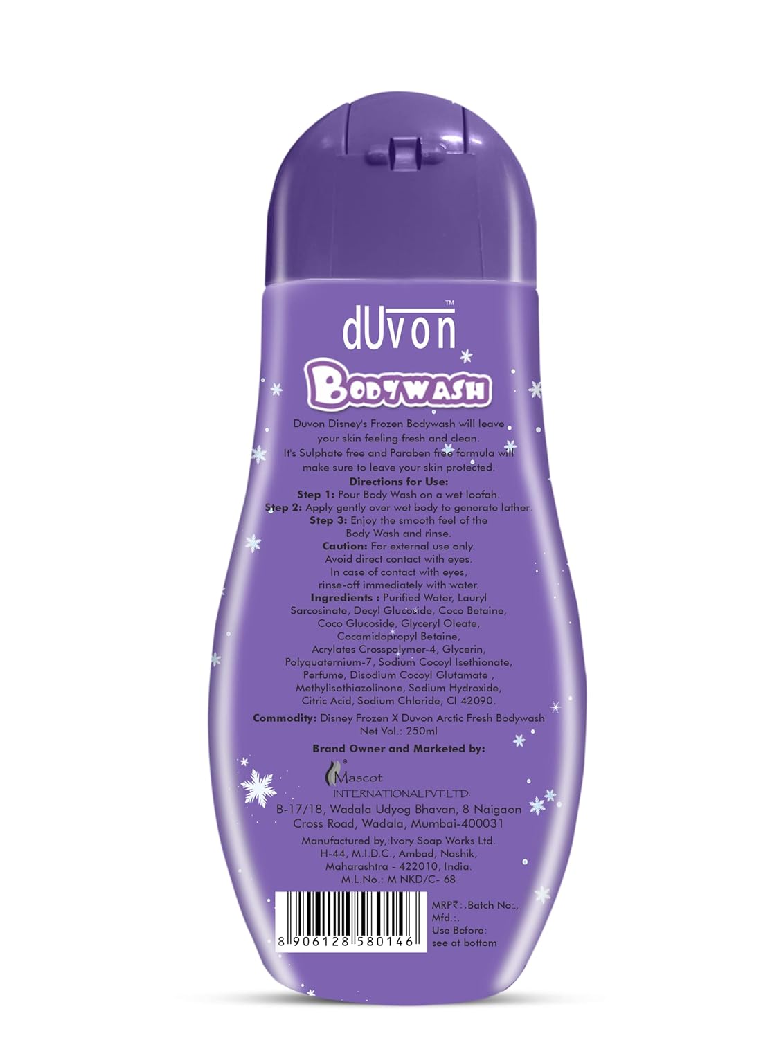 Immerse yourself in the icy elegance of the Arctic with our Frozen-themed Bodywash. Infused with a refreshing, cool fragrance, this bodywash cleanses and invigorates your skin, leaving it feeling crisp, clean, and revitalized. Perfect for fans of Frozen and those seeking a frosty, revitalizing shower experience.