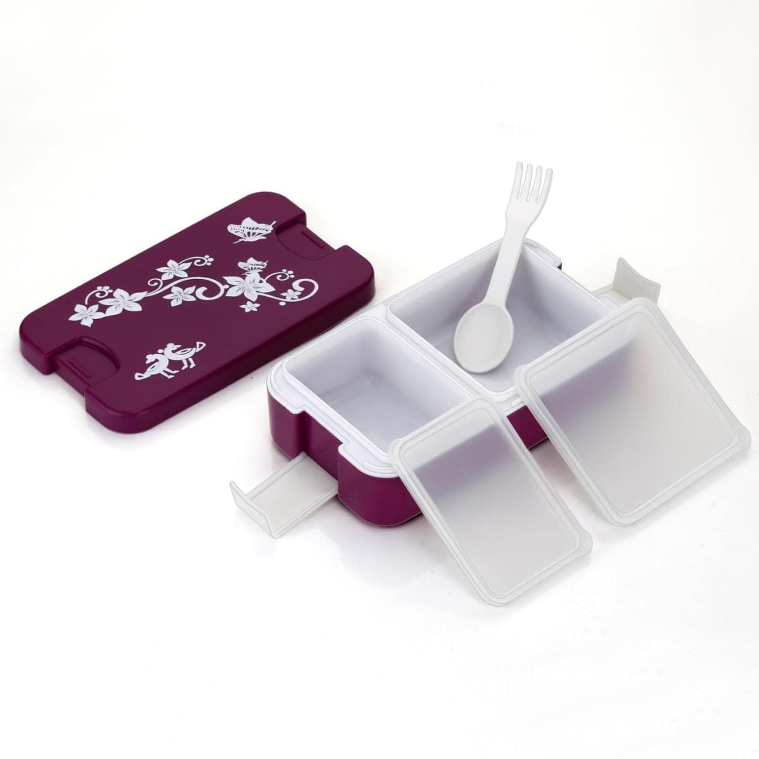 Generic Airtight Lunch Box 2 Compartment | Safety Lock Airtight Tiffin Containers | Leak-Proof Lunch Box | Lunch Box with Spoon | Lunch Box Set for Office, Home and School | BPA-Free (Burgandi)
