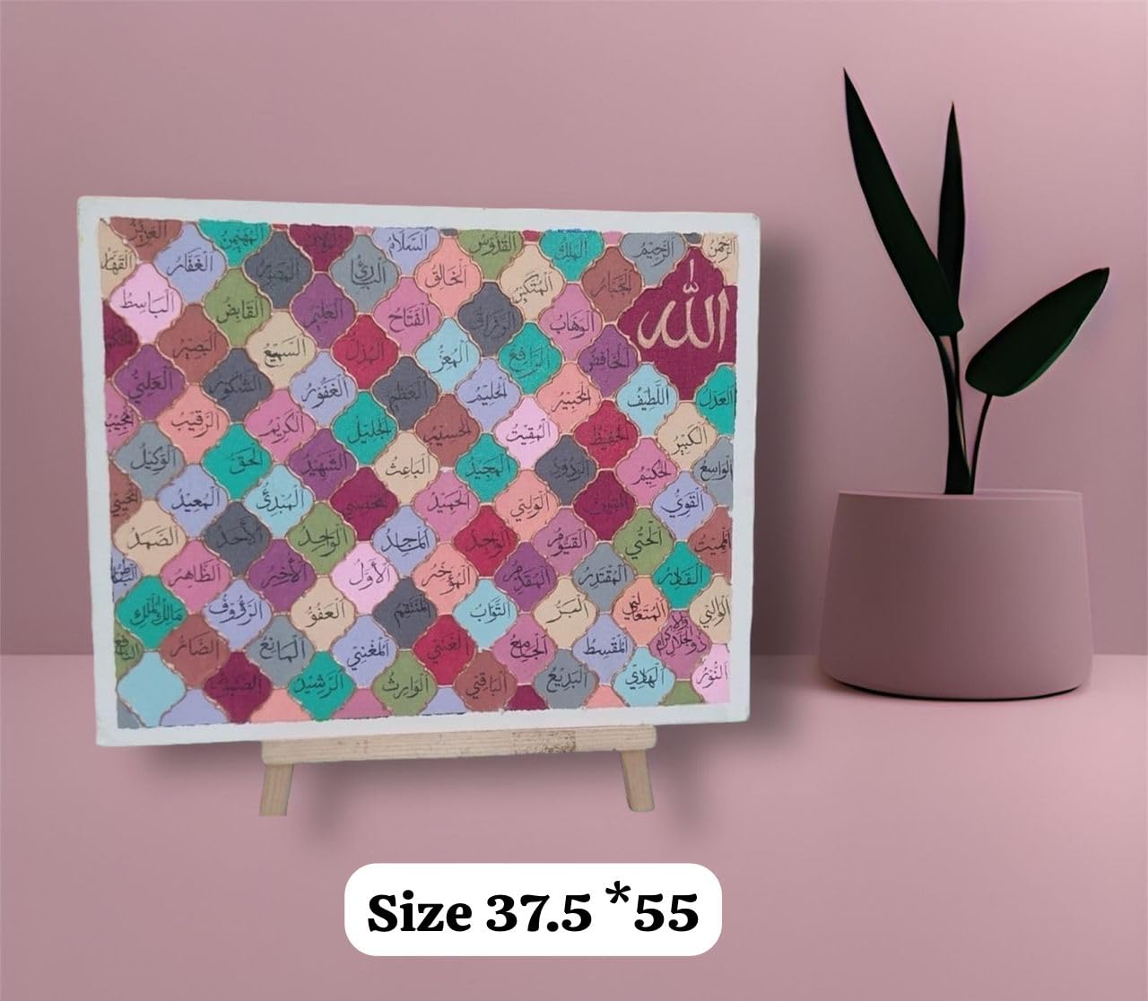 Brighten your home with elegant hand made Asmavul husna arabic calligraphy with texture paint art works. This nature of this painting made your home very special and enhance the beauty of your home. This spiritual art 99 names of Allah meticulously crafted by skilled artisan.Made with premium quality canvas. This Arabic calligraphy wall art is a meaningful addition to your home decor as well as gift for your loved ones.