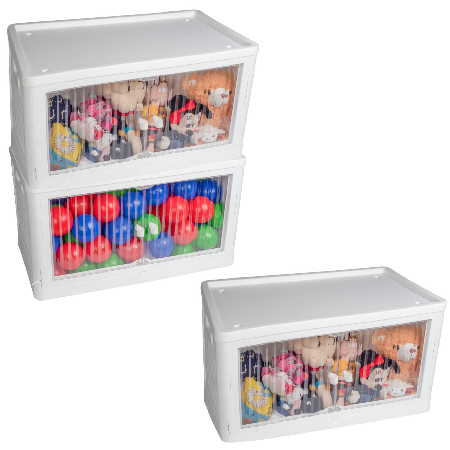 The white storage bins with lids is able to open in two ways. You can open lid on the top of the folding storage box or open from the front door.