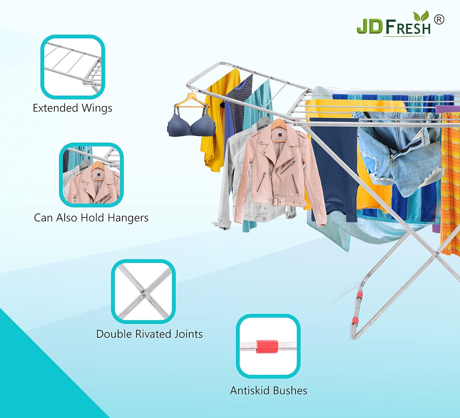 ๐๐๐ฟ๐ฎ๐ฏ๐น๐ฒ ๐ฆ๐๐ฒ๐ฒ๐น ๐๐ผ๐ป๐๐๐ฟ๐๐ฐ๐๐ถ๐ผ๐ป: Built with high-quality steel, this clothes stand for drying offers exceptional durability and stability, ensuring long-lasting performance for your laundry needs.