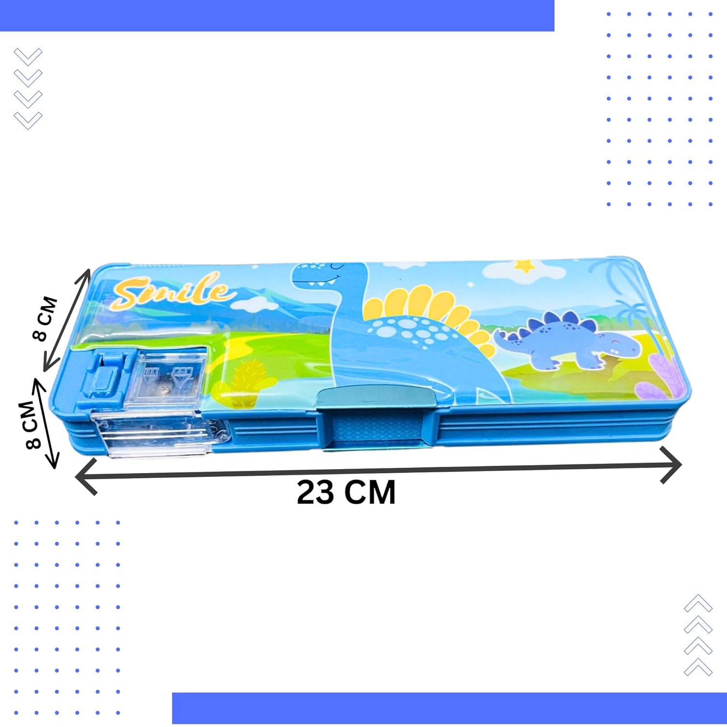 Happy Dinosaur Cartoon Pencil Box: This unique box can accommodate all the necessary stationery that your child would need to carry to school with separate slots for pencil, rubber, eraser