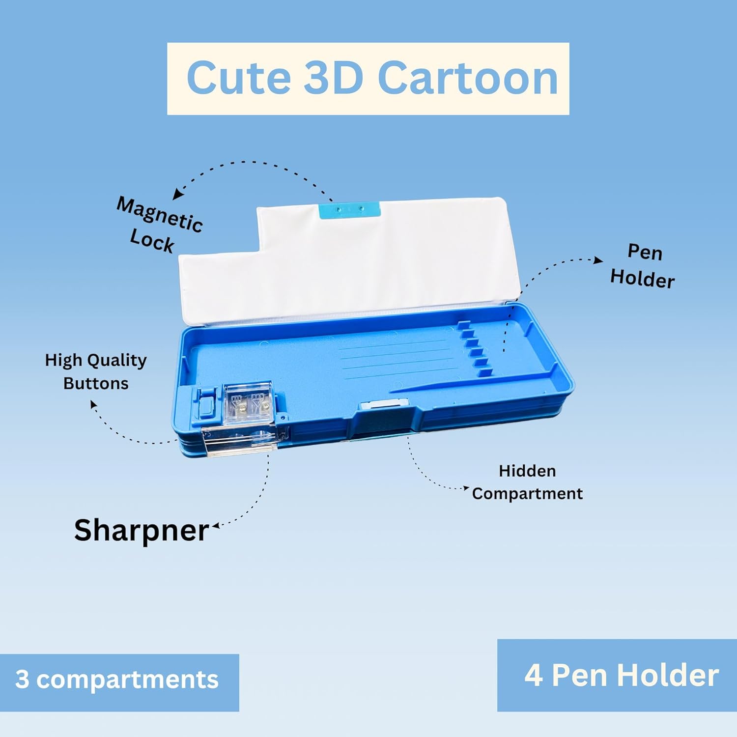 Stylish Magnetic Pencil Box – Magnetic pencil box for kids is made of very high-quality material well designed: large capacity pencil case is very spacious and attractive; Features – Magnetic lock features with two side compartments, each one to pop out inbuilt sharpener, eraser compartment, additional compartment and pencil/pen holder