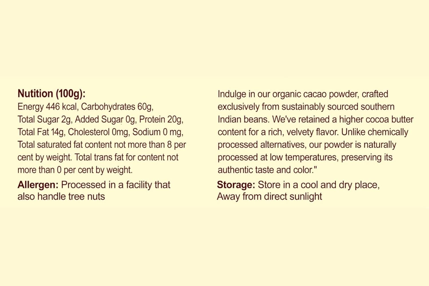 Organic: Our cocoa powder is certified organic, ensuring it is cultivated without the use of harmful pesticides or chemicals.