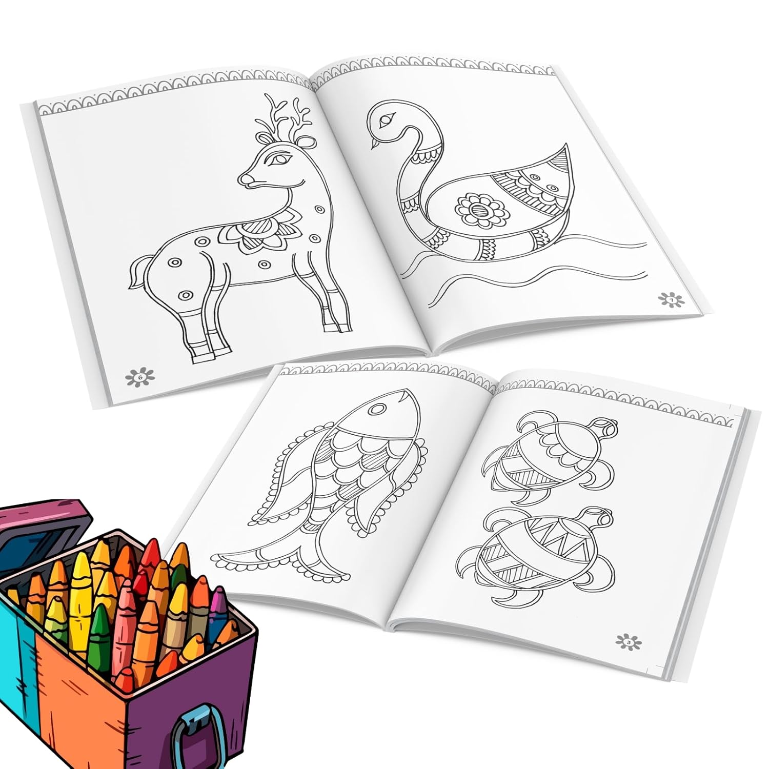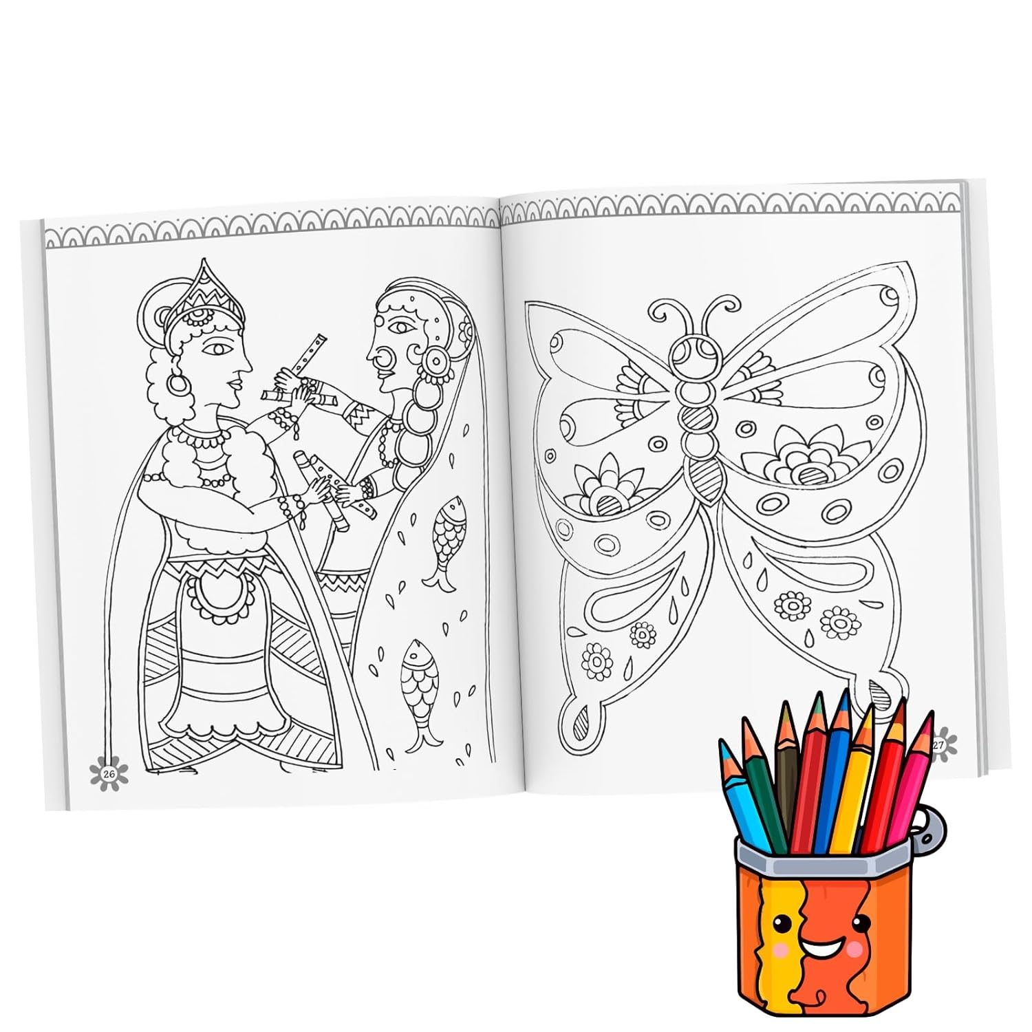Madhubani is an ancient folk art form that originated in India. It combines intricate designs with bold colours and geometric patterns, promoting positivity, self-expression and holistic healing. Use this book to dive into the transformative journey of creativity and rejuvenation.