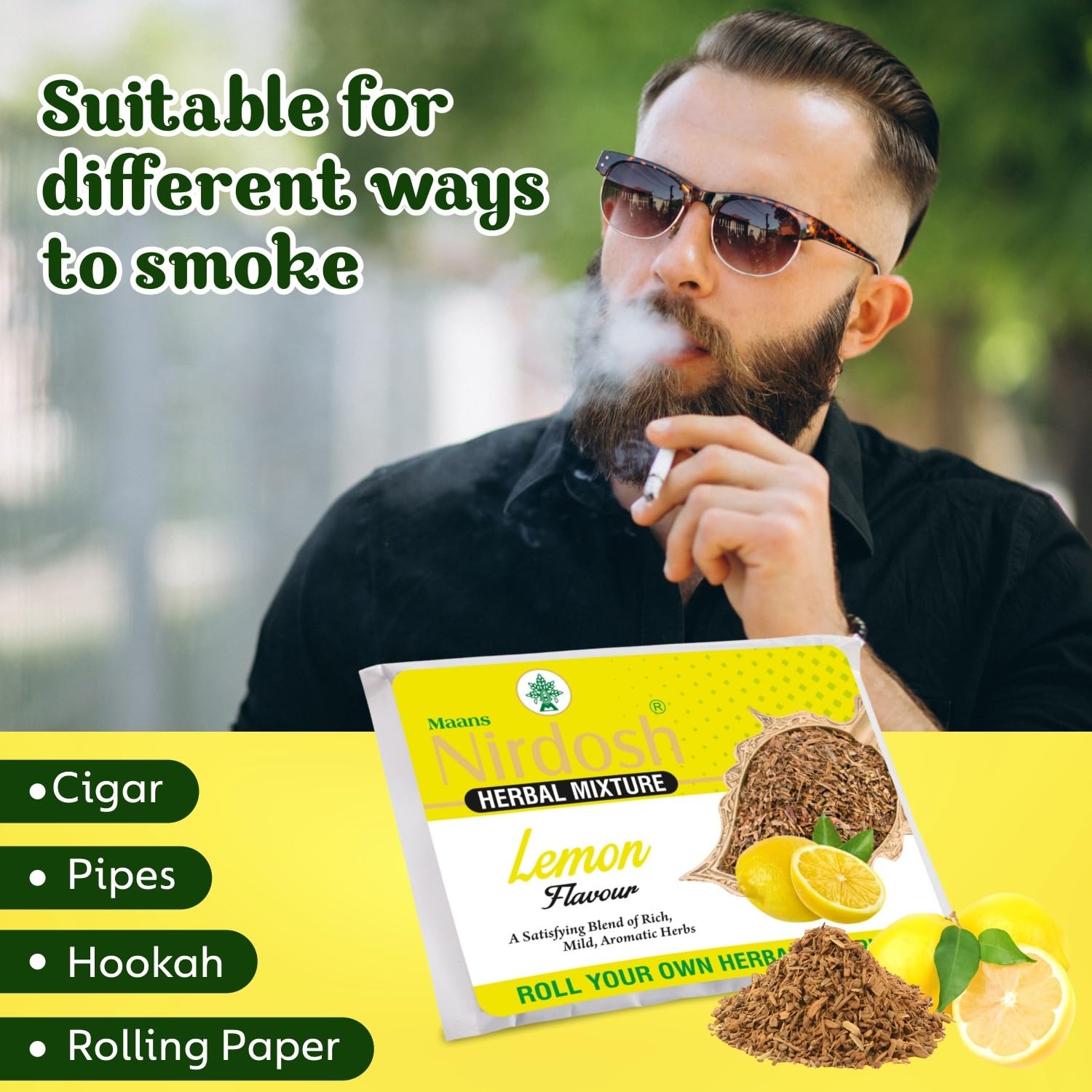 CRAFTED FROM NATURAL HERBS & SPICES: Made from a premium blend of organic herbs and spices, Nirdosh Herbal Raw Mixture ensures a natural and wholesome smoking experience. The blend is designed to complement the rich Lemon flavor while being free from harmful additives.