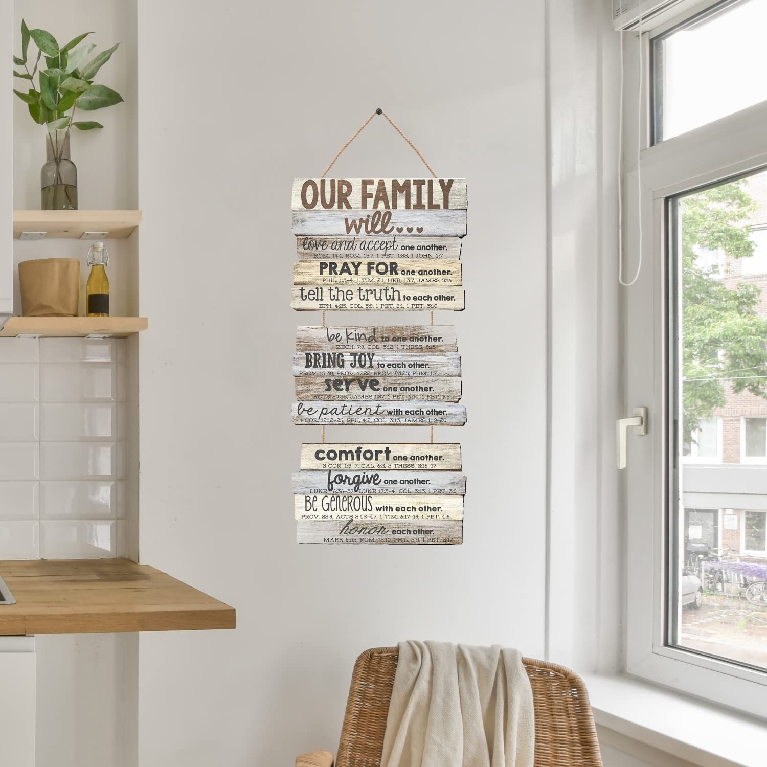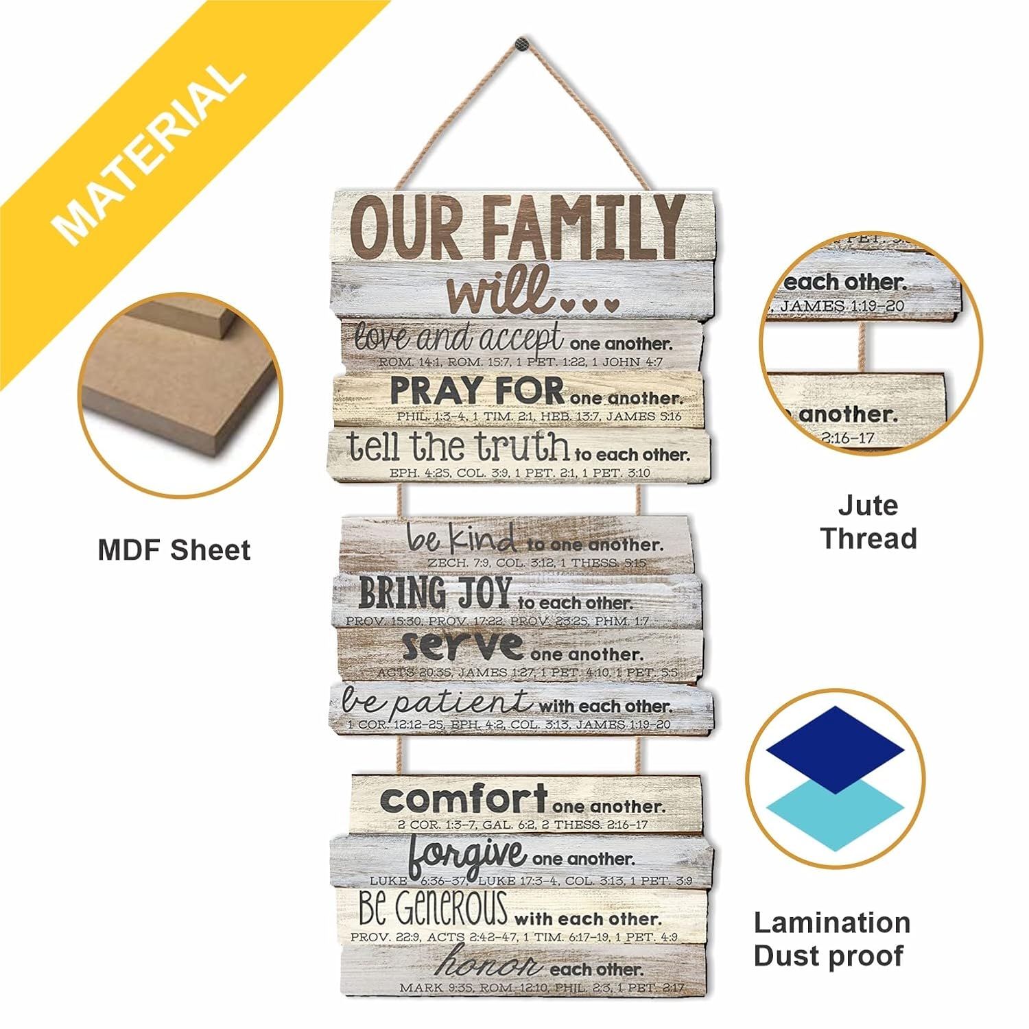 Here you have our lovely unique OUR FAMILY Plaques for wall decor . Comes with Chain . Perfect as a gift for any special occasion or a lovely addition to your home. The hanging wall sign is sturdy, reliable, lightweight but durable, not easy to fade off, nice home decorations that can serve you for a long time.
