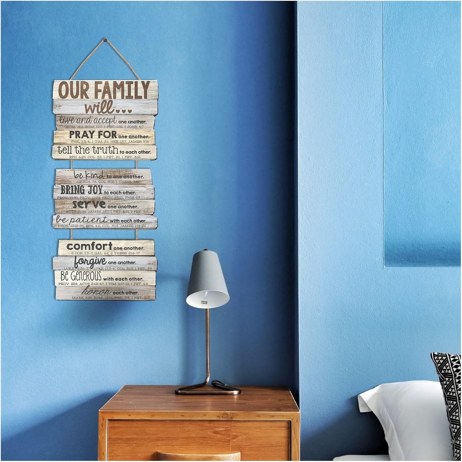 Customers find the wall hanging’s design elegant and appreciate its Bible verses, with one noting it blends well with walls. The material quality receives mixed feedback, with some praising the material while others find it thin, and customers disagree on whether it’s worth the price. The size receives criticism for being small.