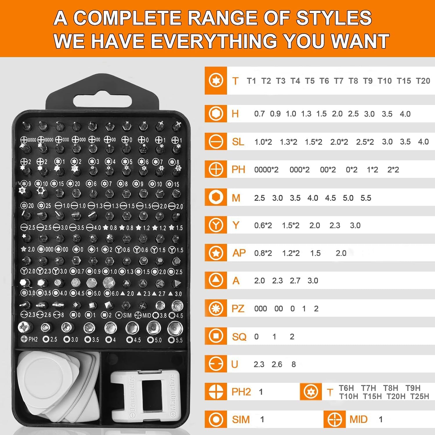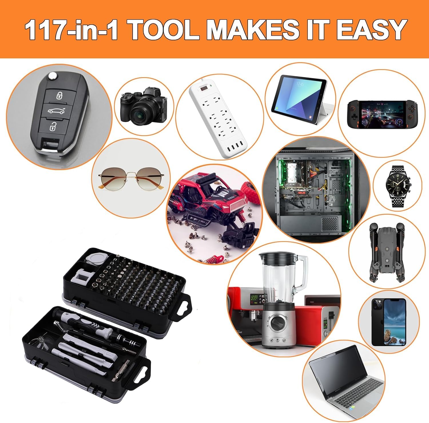 【ALWAYS CHOOSE THE CLASSIC】 The 115 in 1 Precision Screwdriver Kit is the most original and classic electronics repair tool kit, containing 98 screwdriver heads and 17 accessories. The electronic multi-screwdriver basically covers all the tools for electronics and small repairs – perfect for laptops, phones, computers, jewelers, glasses, game consoles, drones, and other electronics.