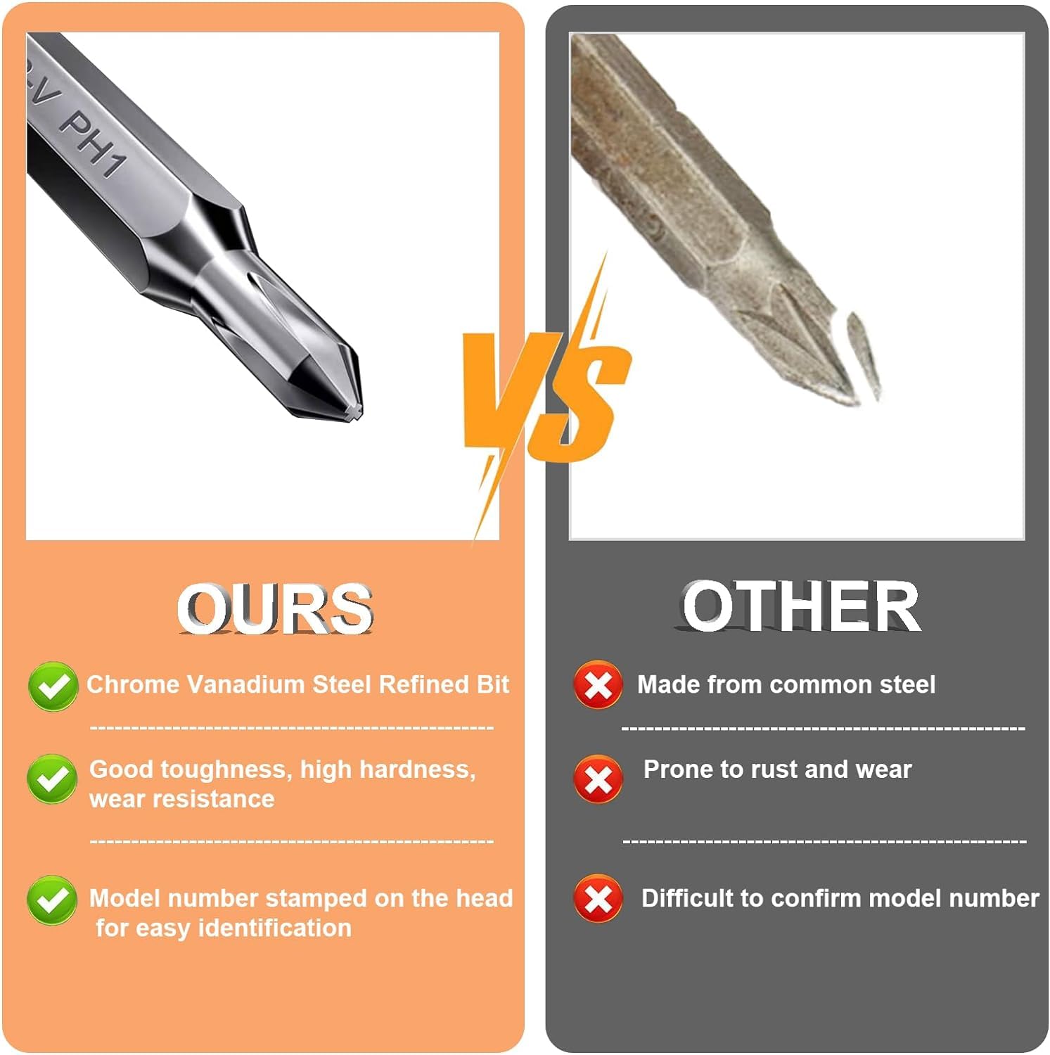 【RELIABLE MATERIAL】 This magnetic replaceable screwdriver is crafted from high-quality CR-V steel, which boasts impressive strength, precision, and durability without damaging devices. Every bit is designed using thousands of refined repair data and undergoes a high-temperature treatment process to ensure stability and resistance to stripping, guaranteeing long-lasting use.