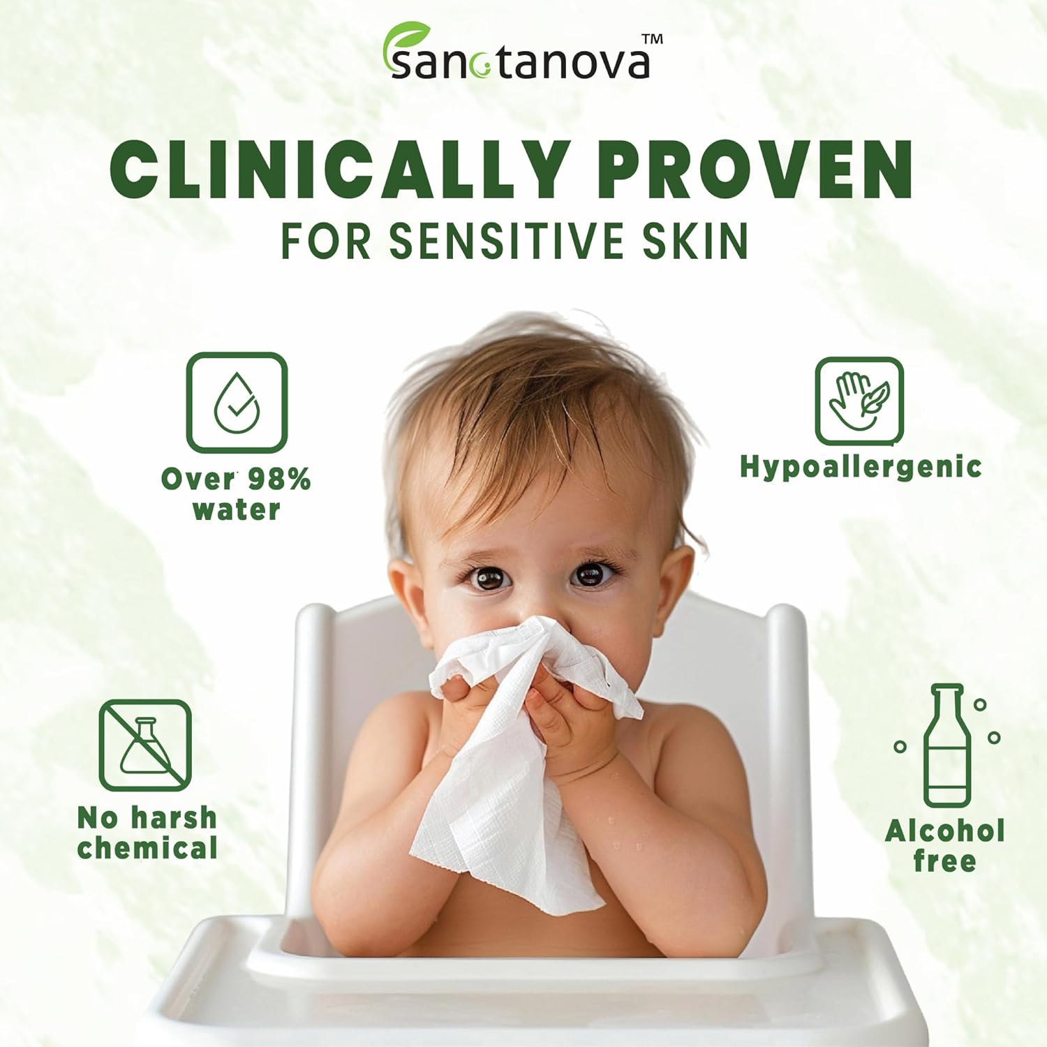 Keep your baby clean, fresh, and protected wherever you go with SANCTANOVA Individually Wrapped Baby Wet Wipes — the smarter, more hygienic choice for modern parents. Made with 99.9% pure water and enriched with aloe vera and chamomile extracts, these wet tissues for babies are extra-soft, gentle, and safe for even the most delicate newborn skin. Each wipe is individually packed to lock in freshness and prevent contamination, making them a must-have in your newborn baby’s essentials. Whether you’re changing diapers, cleaning little hands and faces, or wiping up messes on the move, SANCTANOVA wipes offer the purity of water wipes. Baby wipes are 99.9% water with the convenience of a compact, travel-friendly design. Designed for daily use and trusted by moms, our wet wipes are alcohol-free, paraben-free, and dermatologically tested. Perfect for newborns, infants, and toddlers — and equally handy for kids and adults too. Choose SANCTANOVA — because your baby deserves the cleanest care, one wipe at a time.