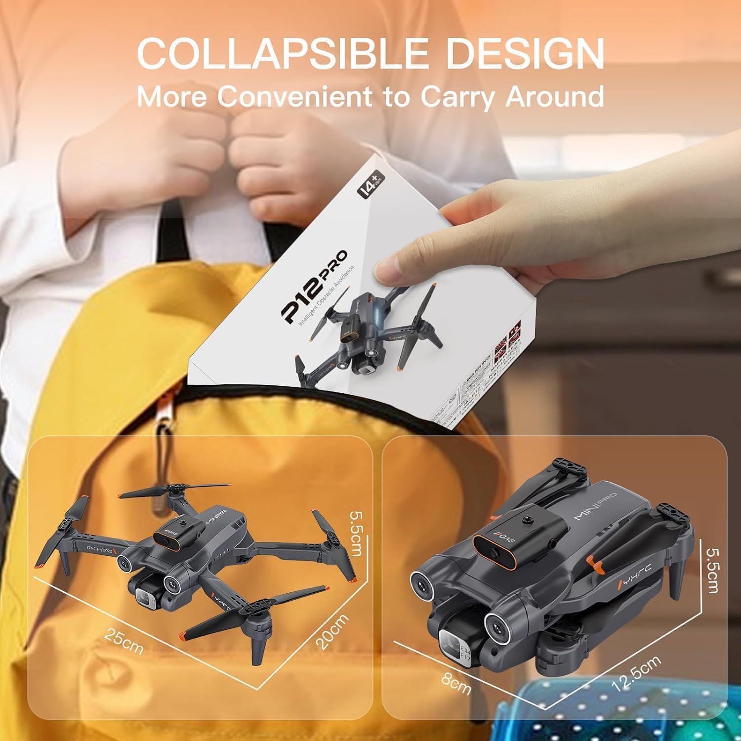 Model: P12 ProAdvanced functions OR Selling points: motor, general machine, with optical flow positioning, wind-resistant and drop-resistant.Remote control battery: AA batteries*3 (brought by yourself)Operation method: remote control/APP controlFrequency: 2.4GHzBody size: (unfolded) 30*27*6CM (folded) 14*9*6CMPackage size: 23*17*8CMCharging method: Universal USB interfaceBattery capacity: 3.7V 1800mAH modular batteryStandalone weight: 188g (including battery)Charging time: 90 minutesRemote control distance is about: 150 metersVideo resolution: HD dual cameraSpeed adjustment: slow/medium/fast