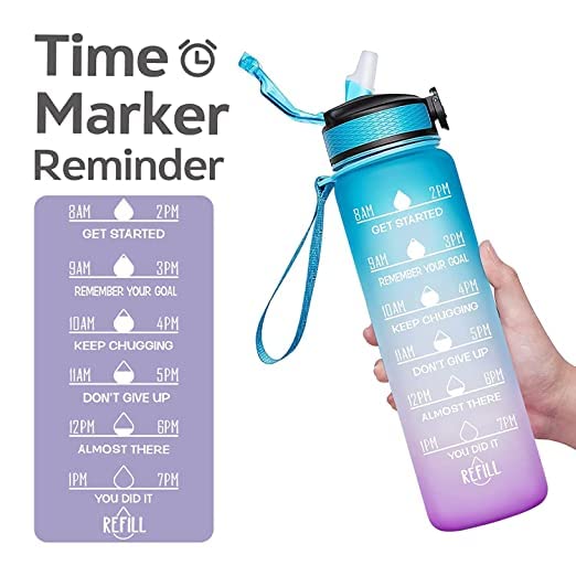 With unique inspirational quote and time markers on it,this water bottle is great for measuring your daily intake of water,reminding you stay hydrated and drink enough water throughout the day.