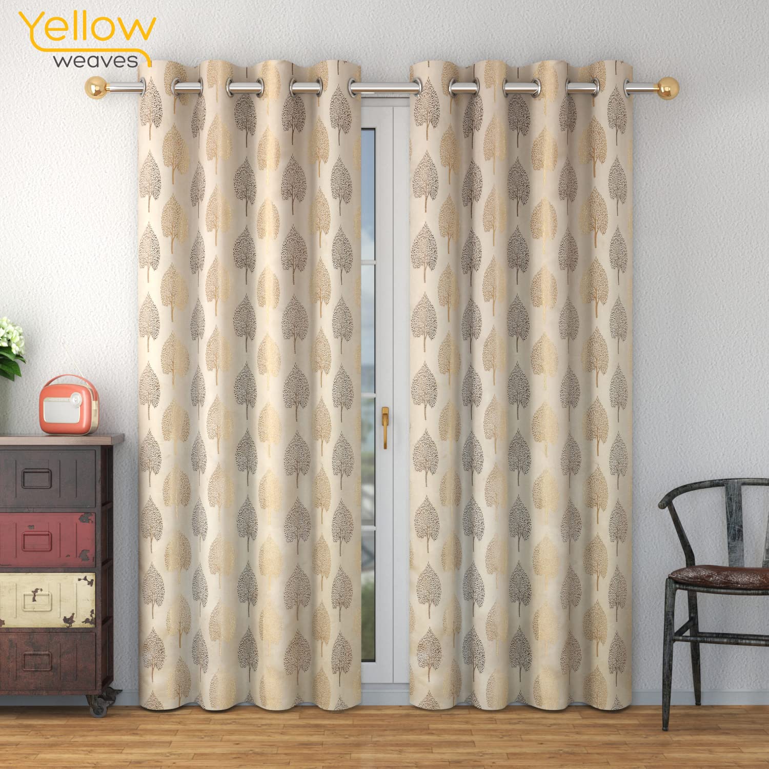 Color- Beige Brown, Fabric : These curtains are made of polyester jacquard Fabric. This premium fabric give the curtain a rich and luxurious look and soft feel that makes it an ideal addition to a bedroom or living room, for both aesthetic and room darkening functionality.