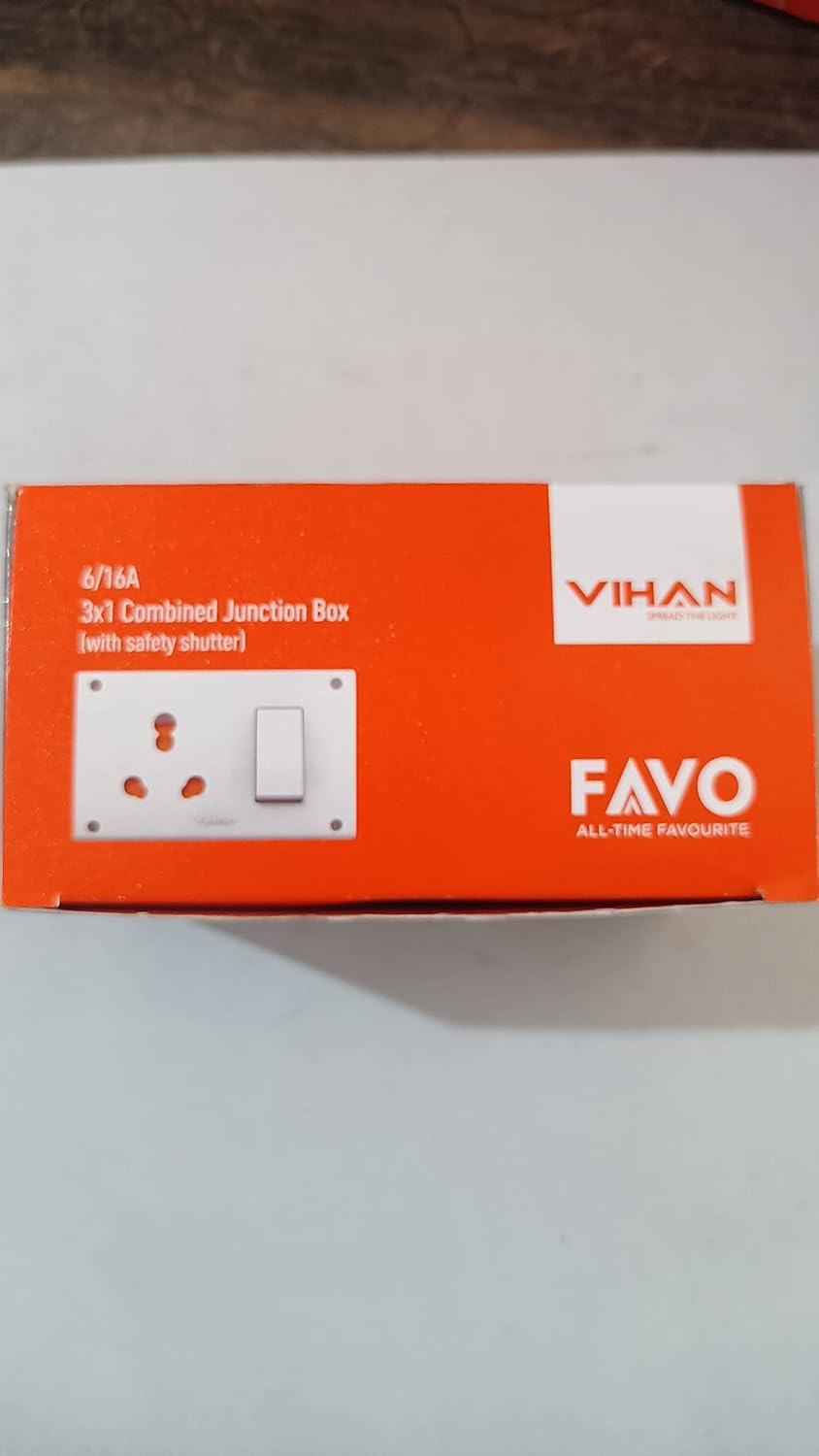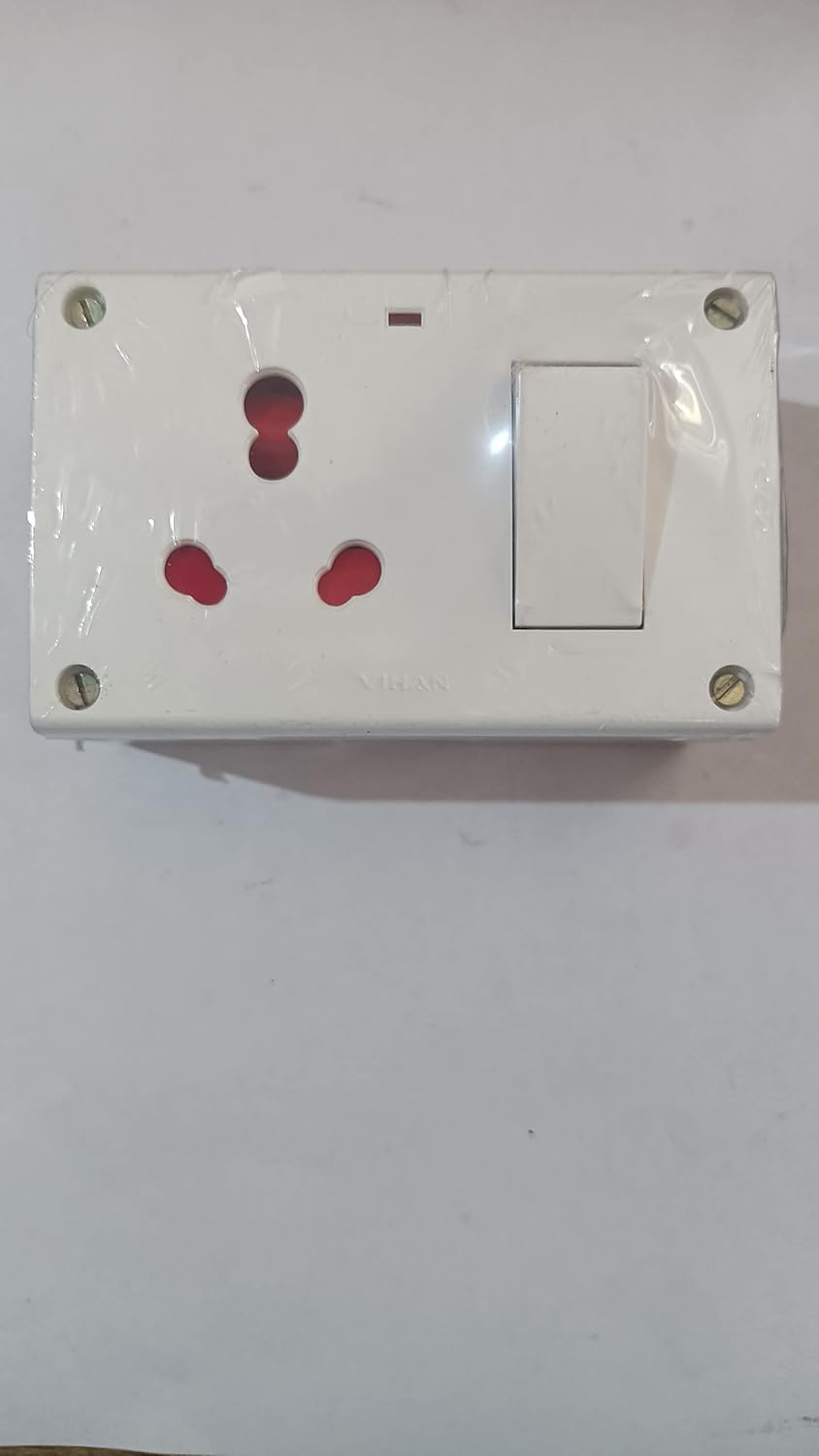 Vihan 16A combine with switch and socket Power (switch) : These are used for switching higher power consuming loads upto 1200 W. Equipment like Refrigerators, Microwave , Induction cook top, washing machine can be switched using 16A switches.(pack of 5)