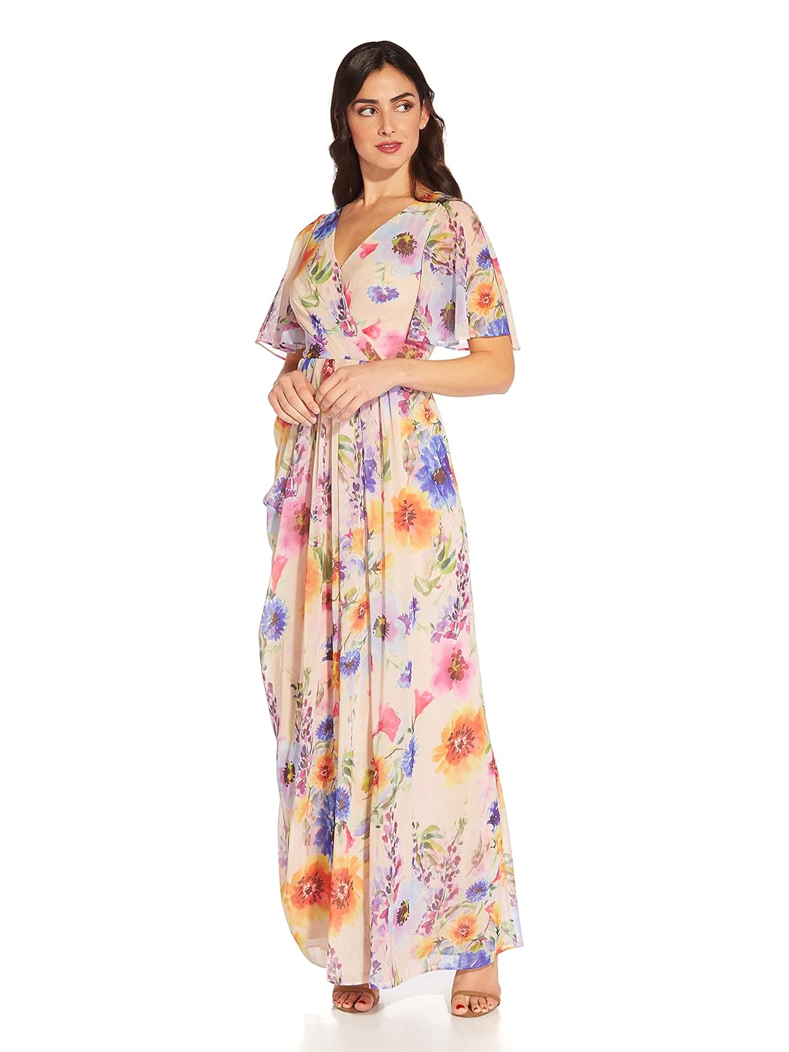 This Is A Chiffon Printed Gown With Full Sleeves.
