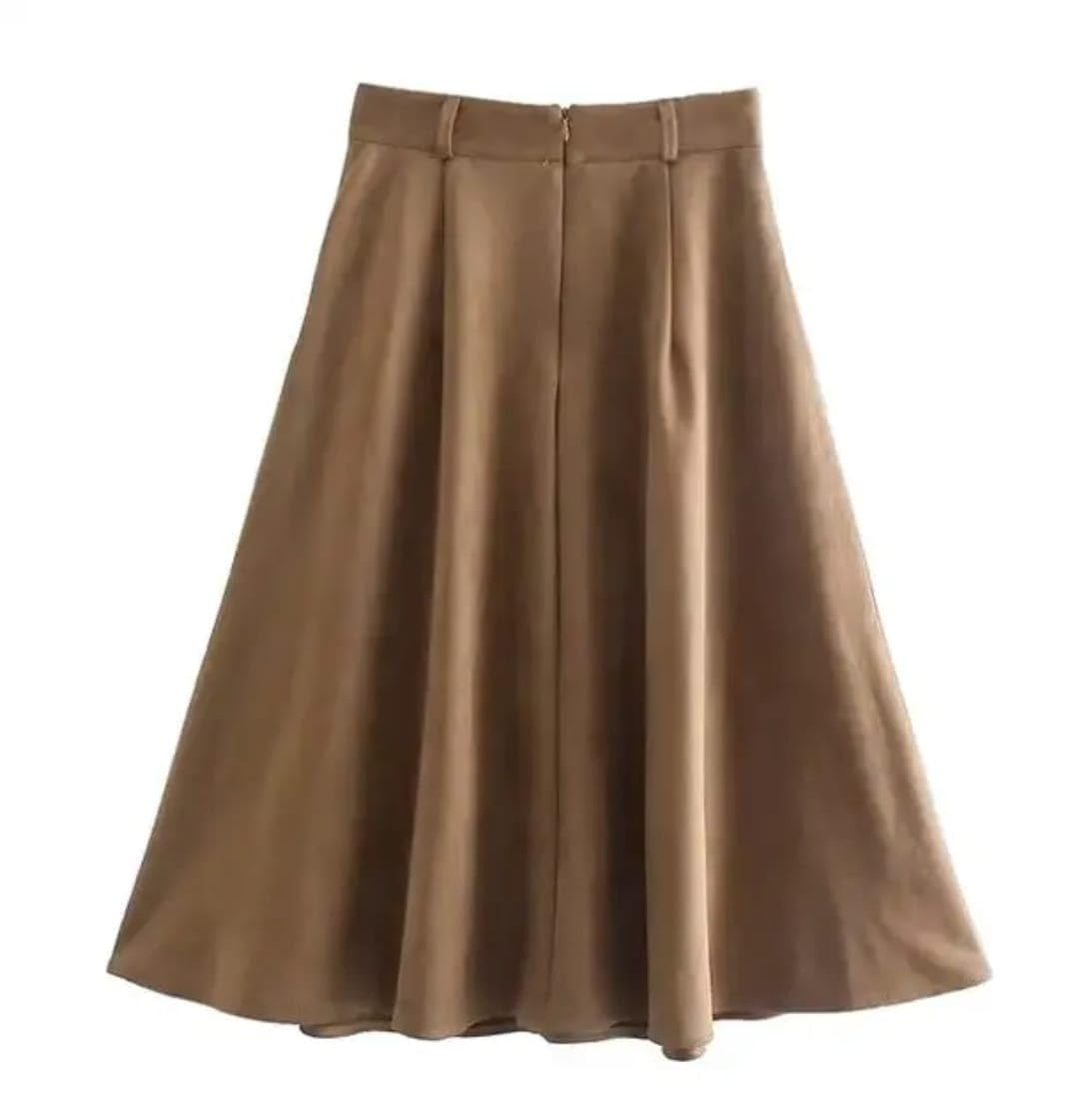Preppy and vintage style faux suede skirt, is a timeless item for your wardrobe. Our pleated midi skirt is designed with single breasted button decor, elastic back, high waist, side hidden zipper, swing fit and flare hem. This classic look skirt is easy to dress up, the design of the pleated is very cute and charming,suit for each age and occasion. Our skirt is made of slight stretchy faux suedefabric, it’s soft, lightweight and touchable to your skin. Versatile skirt you can match with casual tops, button down formal blouses or shirts, denim jackets and so on. Suit for casual daily, going out, party, work office, school, shopping, cocktail, coffee tea time and interview. Great for Summer, Spring, Autumn and Winter.