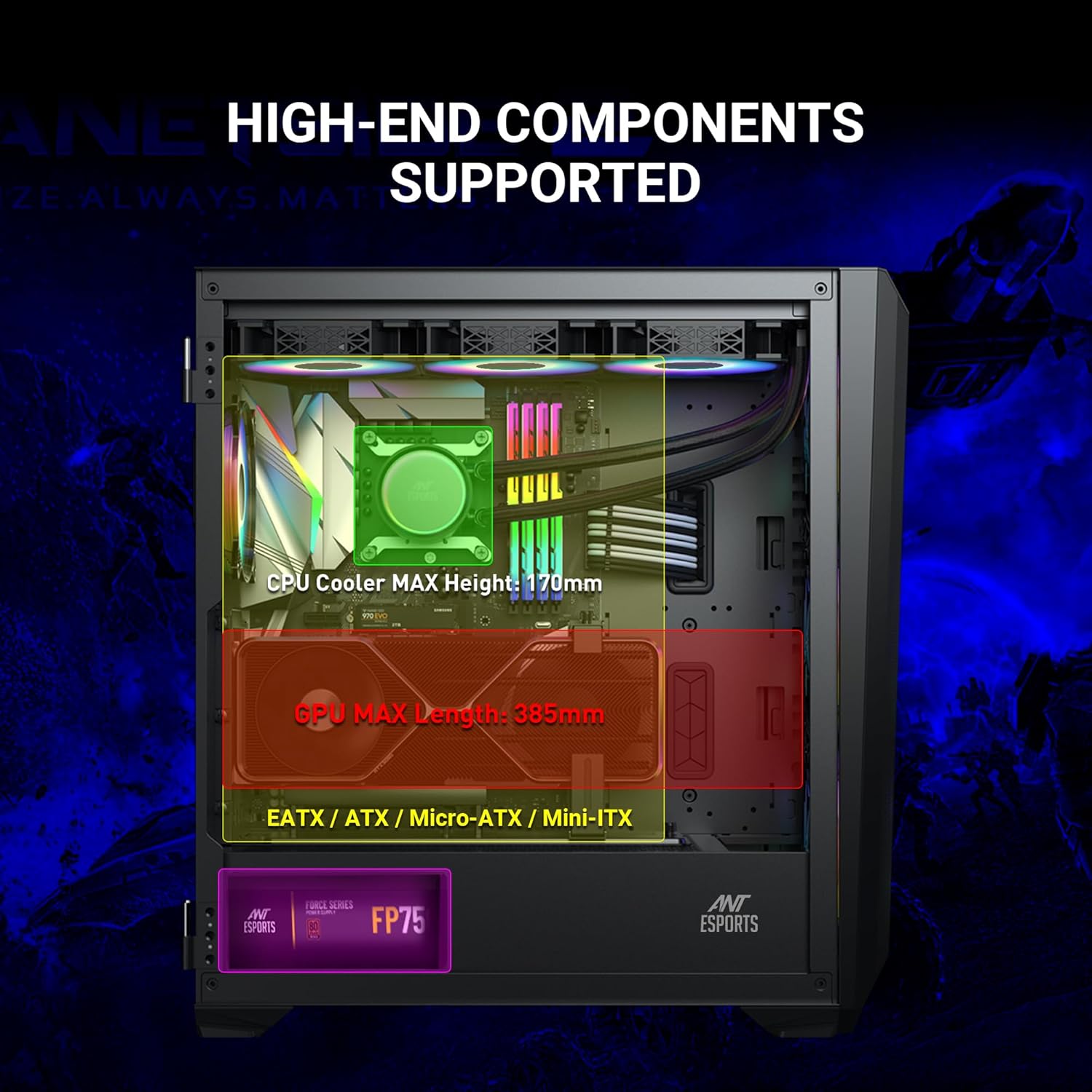 VGA Card Length : 385 mm ; CPU Cooler Height : 170 mm