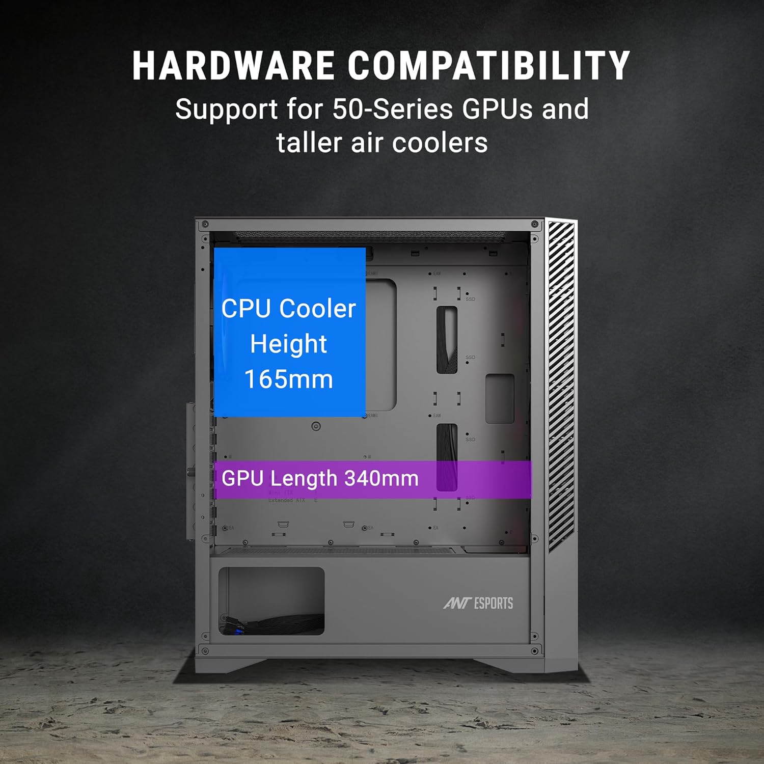 All-around Compatibility With up to ATX Motherboard, 340mm Graphics Card and 165mm CPU Cooler Support, the case is fully compatible with most modern hardware.