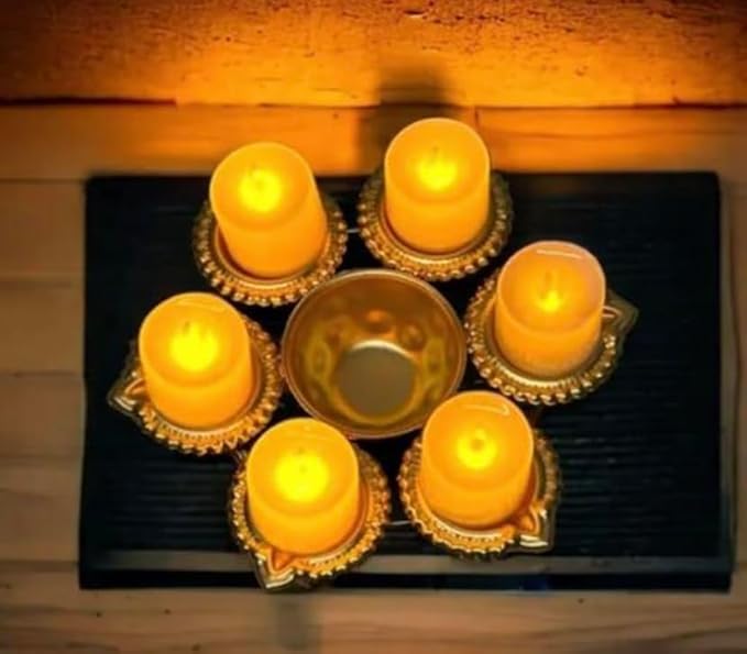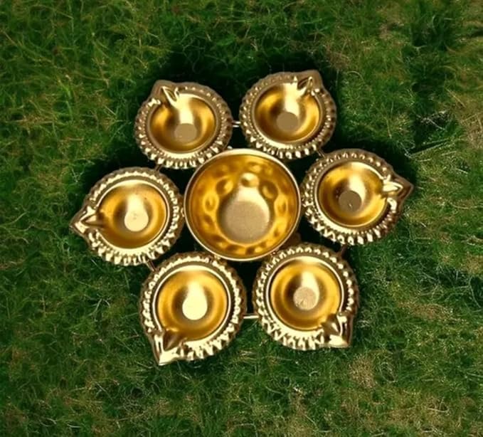 Set of 7 Enhance the sanctity of your pooja rituals with this exquisite 6-inch Diya Urli Bowl. Crafted with precision, this traditional brass bowl is designed to hold water and floating candles, creating a serene and auspicious ambiance during your pooja and aarti ceremonies