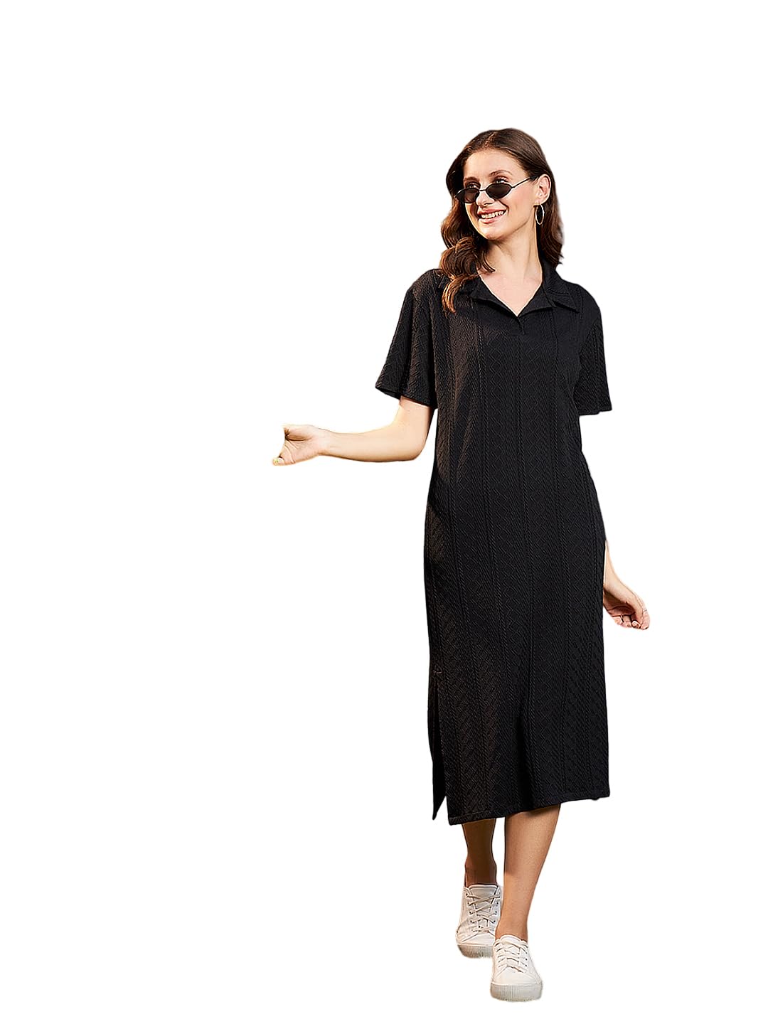 Generic Name : Athena Lifestyle Black Textured T-Shirt Dress