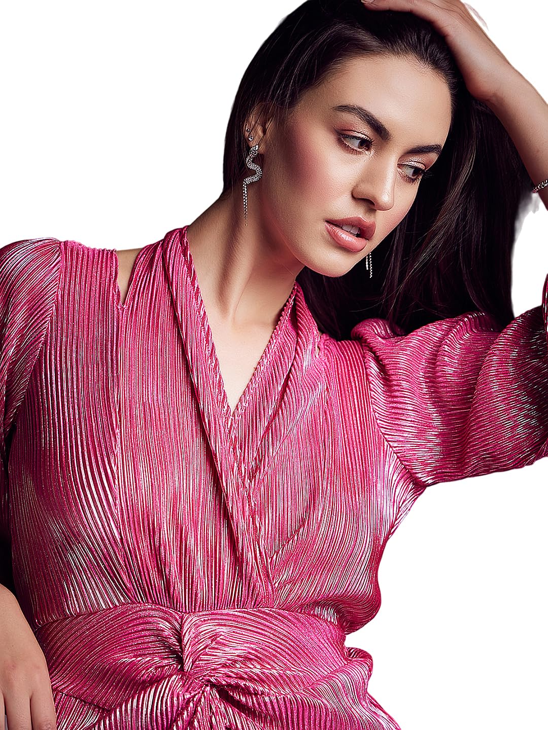 Generic Name : Athena Lifestyle Fuchsia Knotting Pleating dress