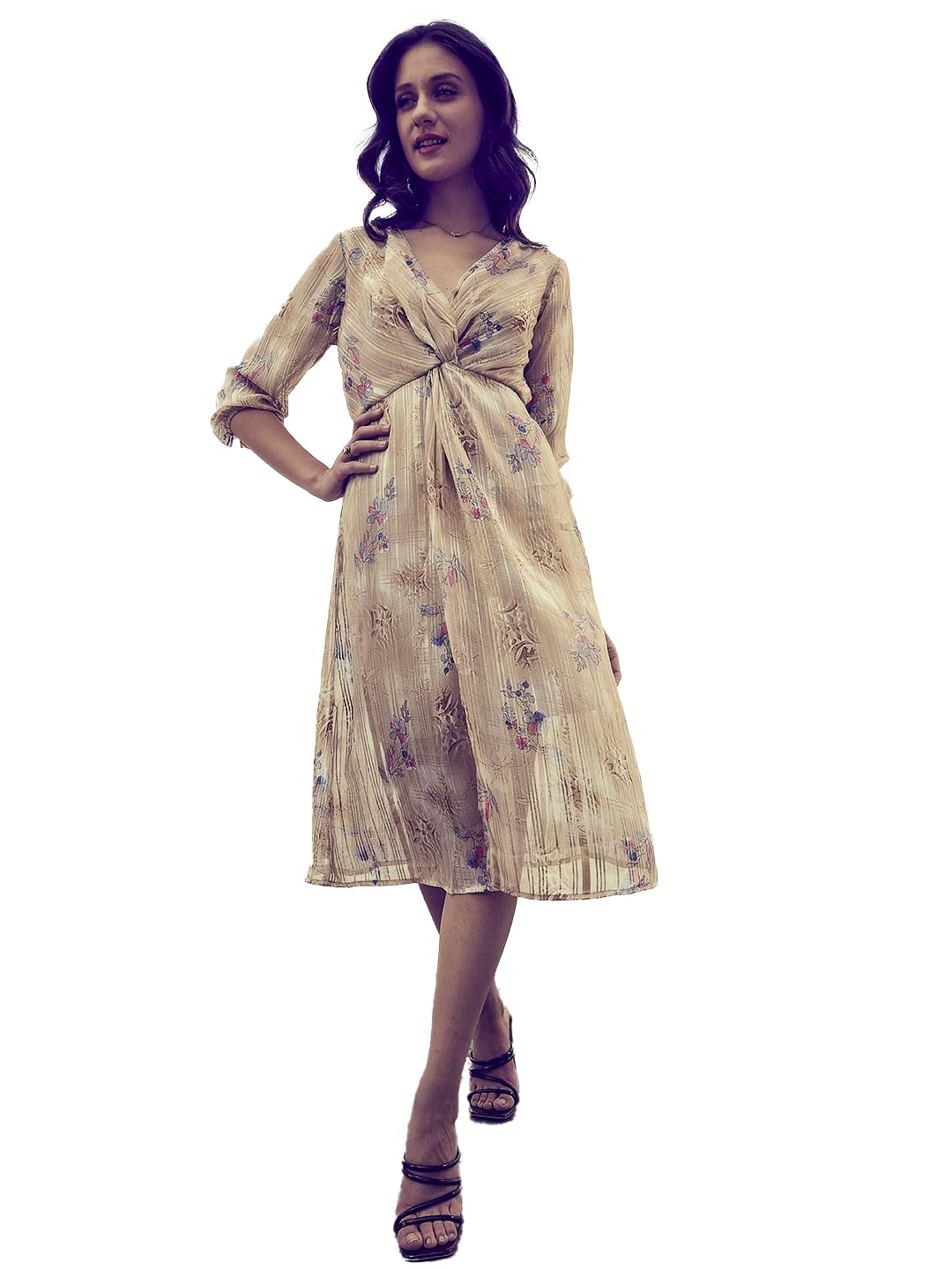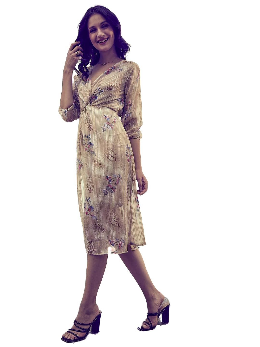 Generic Name                                                                                        :                                                                                        Athena Lifestyle Brown front knotting v neck Dress
