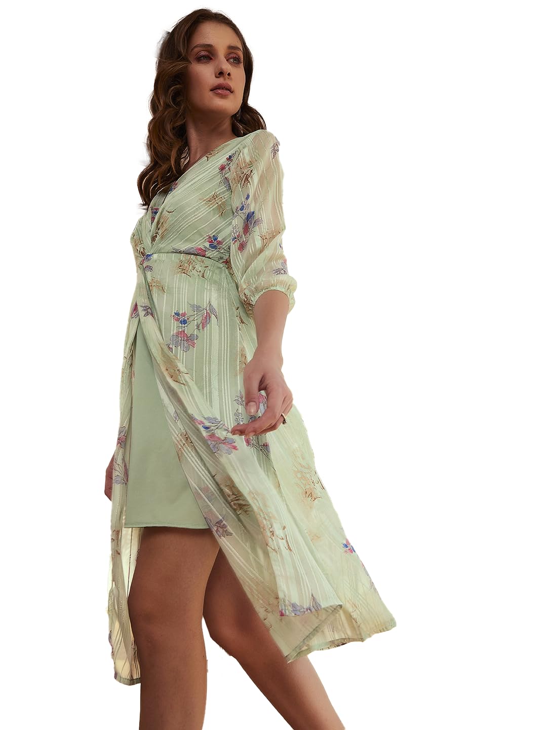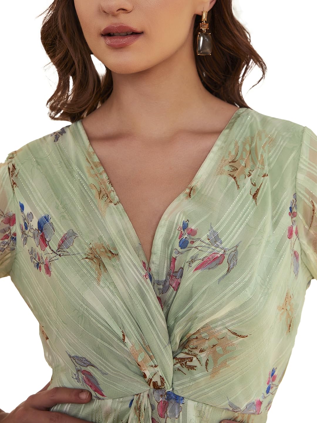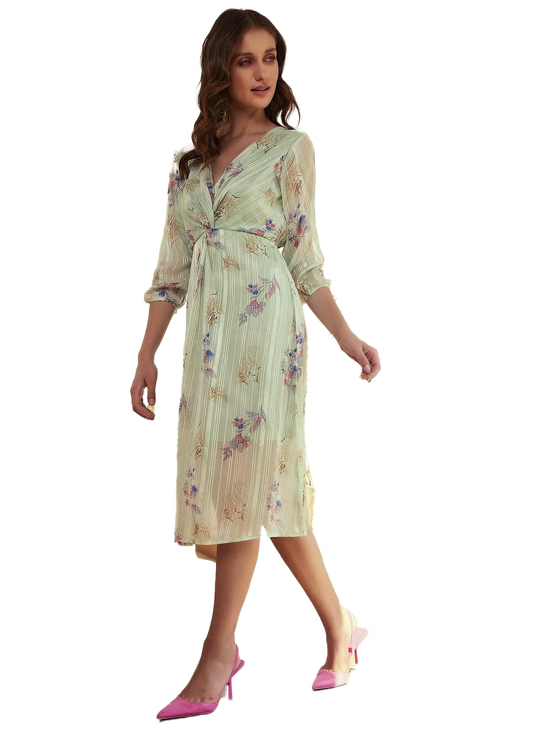 Generic Name ‏ : ‎ Athena Lifestyle Green front knotting v neck Dress