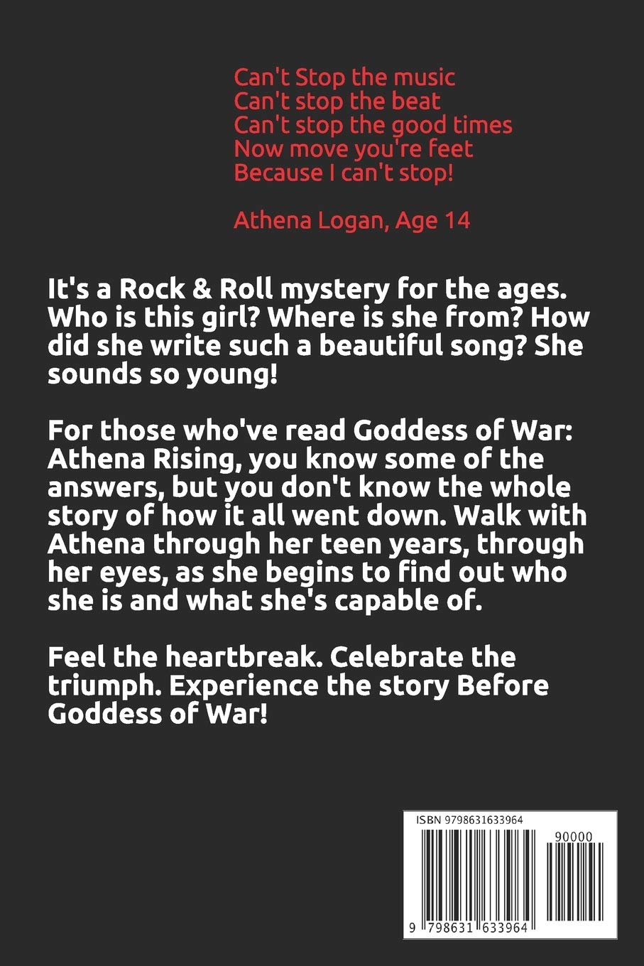 Goddess of War: Athena Rising leaves a few questions, particularly how things such as the Rock & Roll mystery involving Cody Birmingham and an unknown girl having a huge number 1 hit and how that all transpired.If you’re curious, this is Athena’s Story, told from her viewpoint. It covers her life in LA from just before she met Cody, through her move to Boston, ending one day prior to Athena Rising. It chronicles the highs and lows of her relationship, musically and intimately with Cody, as well as the trying times of living in a household that is coming apart, ending in the divorce that brought Athena to Boston.This is a story about a young girl growing up with talent and privilege experiencing hardships and heartbreaks, as she’s having a hard enough time dealing with becoming a young woman in her teens. If you’ve wondered why Athena is who she is, this is the book that will tell you everything you want to know!