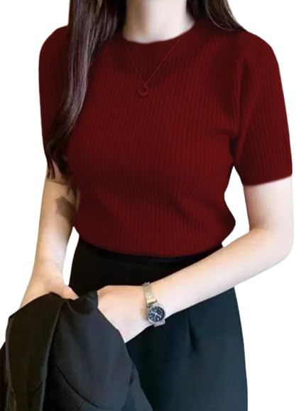 Stay stylish and comfortable with this women’s knitted sweater top. Crafted with a ribbed crew neck design, this short-sleeved t-shirt offers a snug yet relaxed fit. The soft knit fabric provides breathability, making it perfect for warm weather. The vibrant red hue adds a pop of colour to your outfit, allowing you to make a bold statement. Pair it with jeans or skirts for a chic and casual look. With its versatile design, this top can be dressed up or down, making it a must-have addition to your wardrobe. Suitable for various occasions, from casual outings to semi-formal events. Embrace the comfort and style of this knitted sweater top and elevate your fashion game.