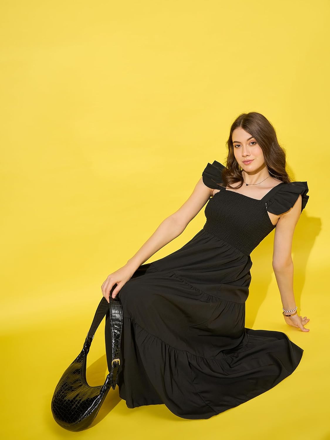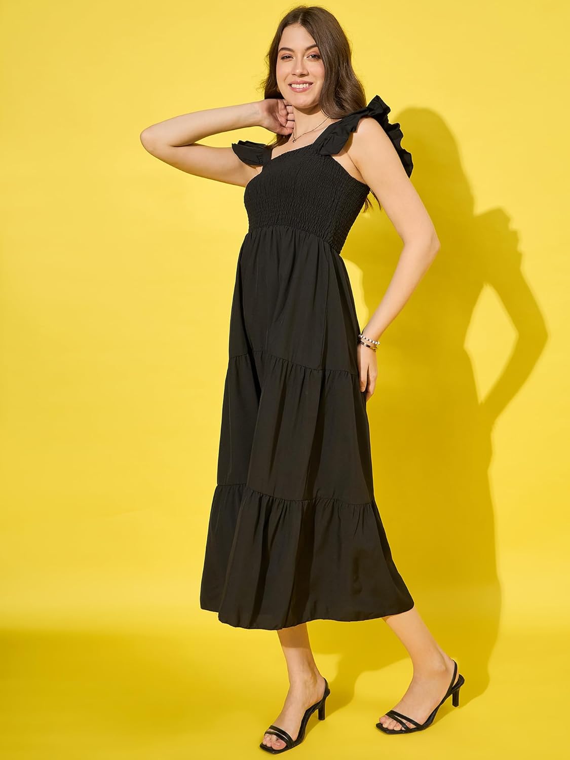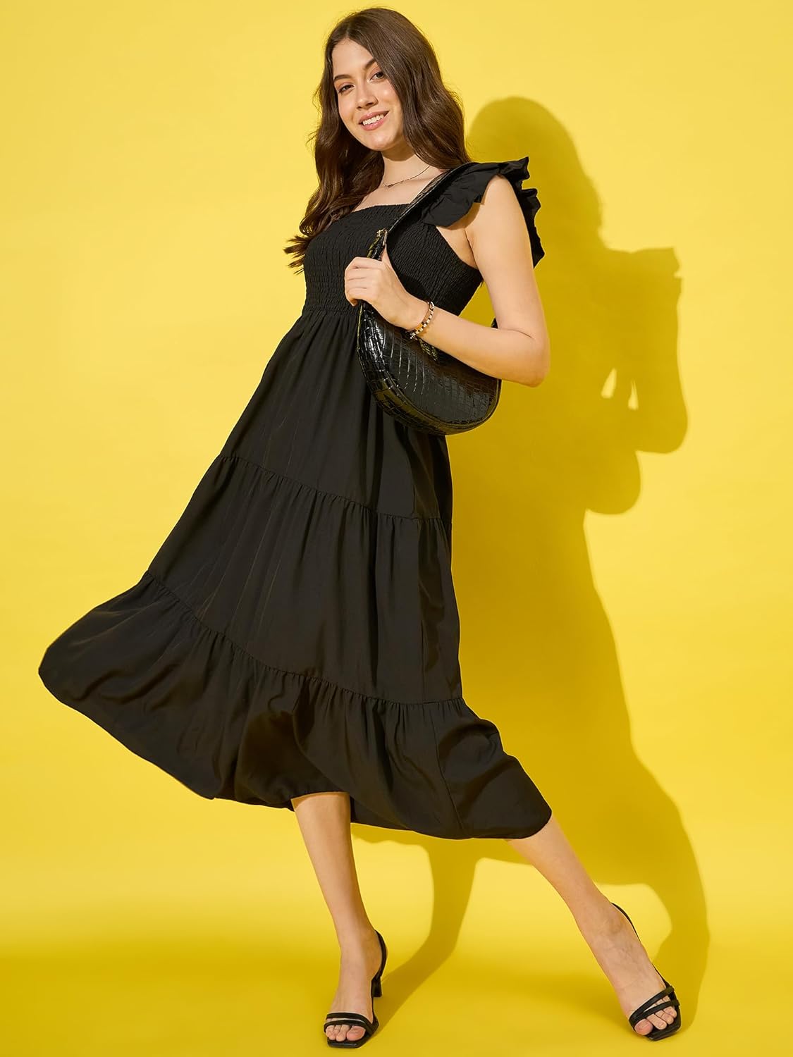 Tiered Fit & Flare Midi Dress, Fabric -Polyester, comfortable, super breathable and light weight