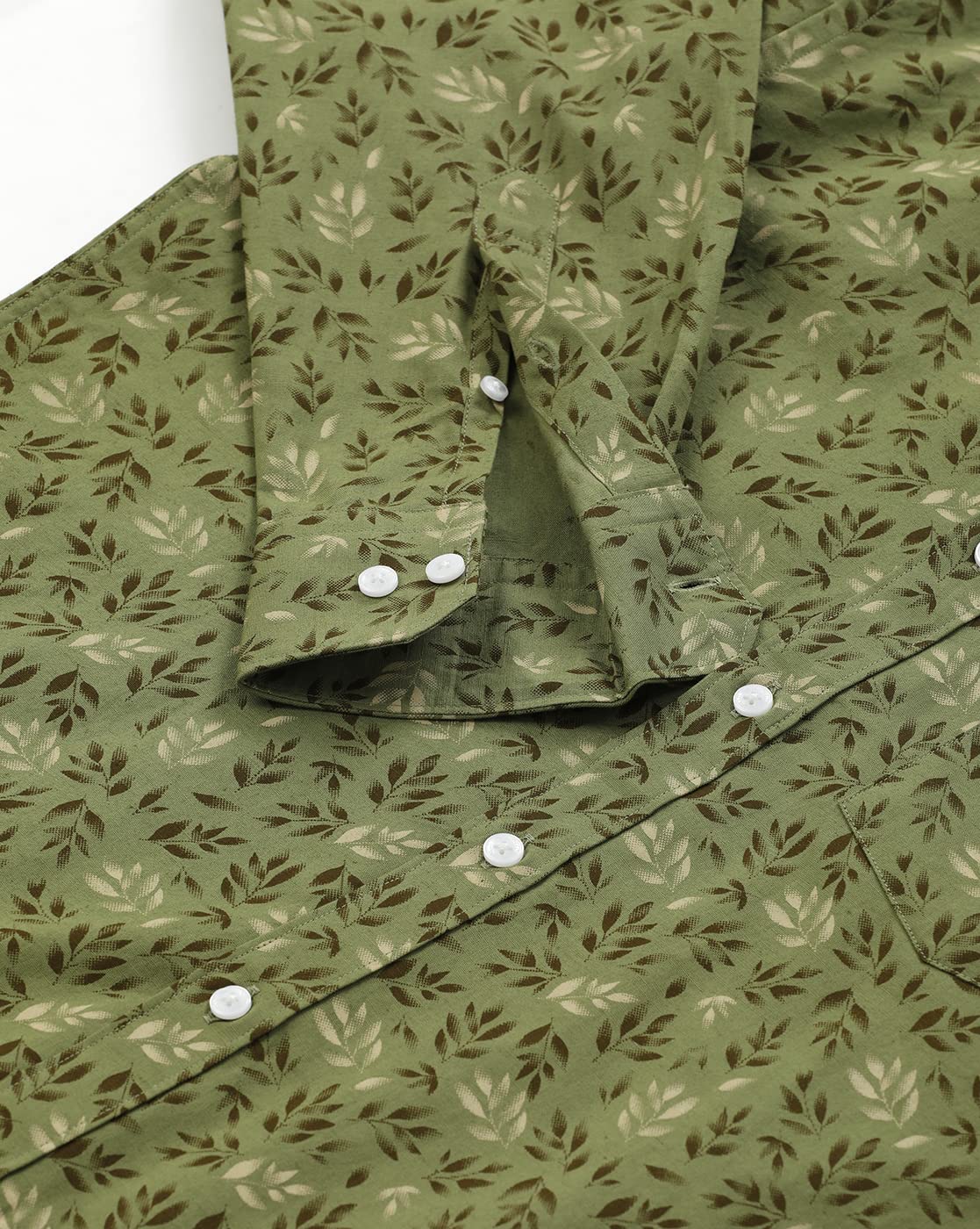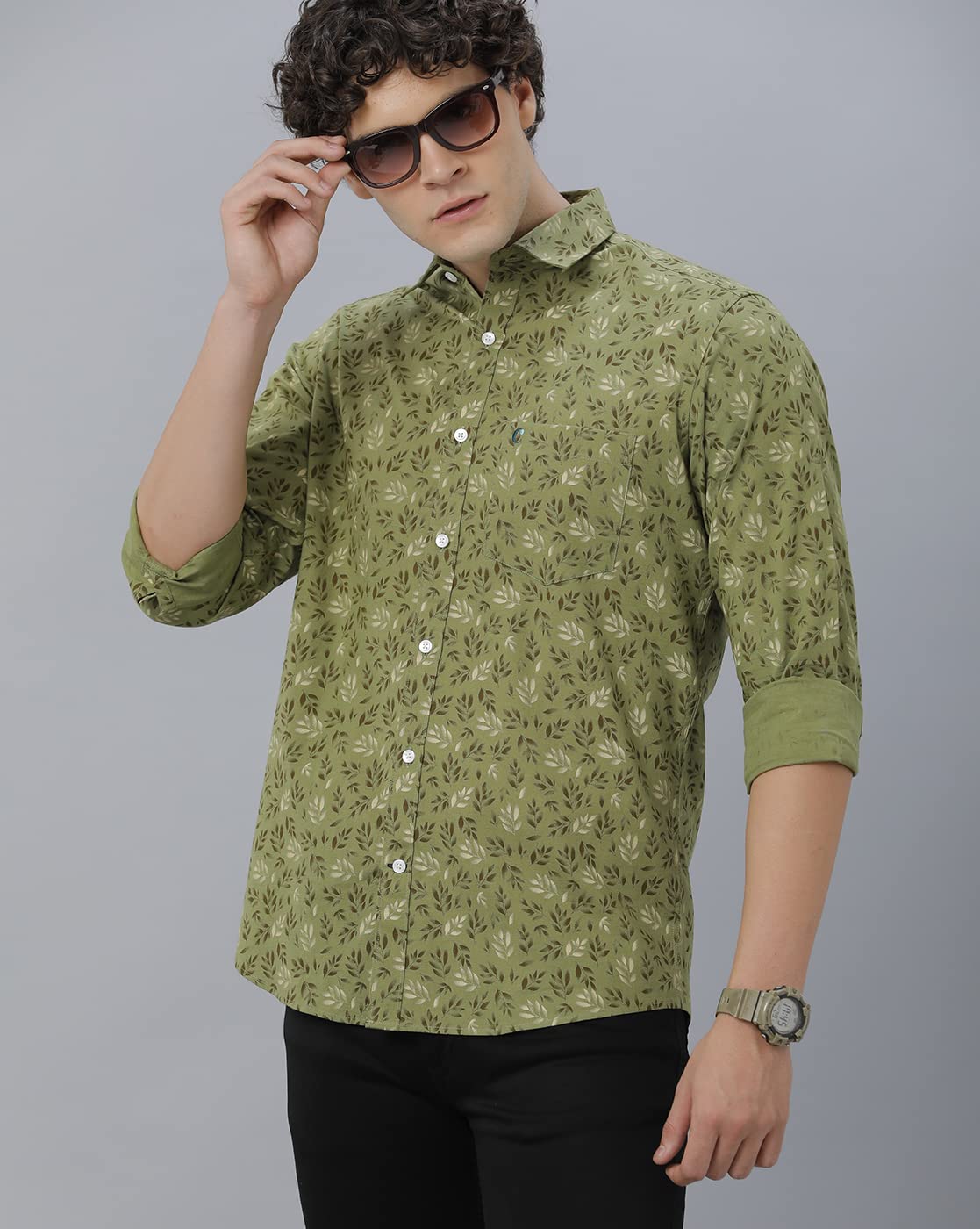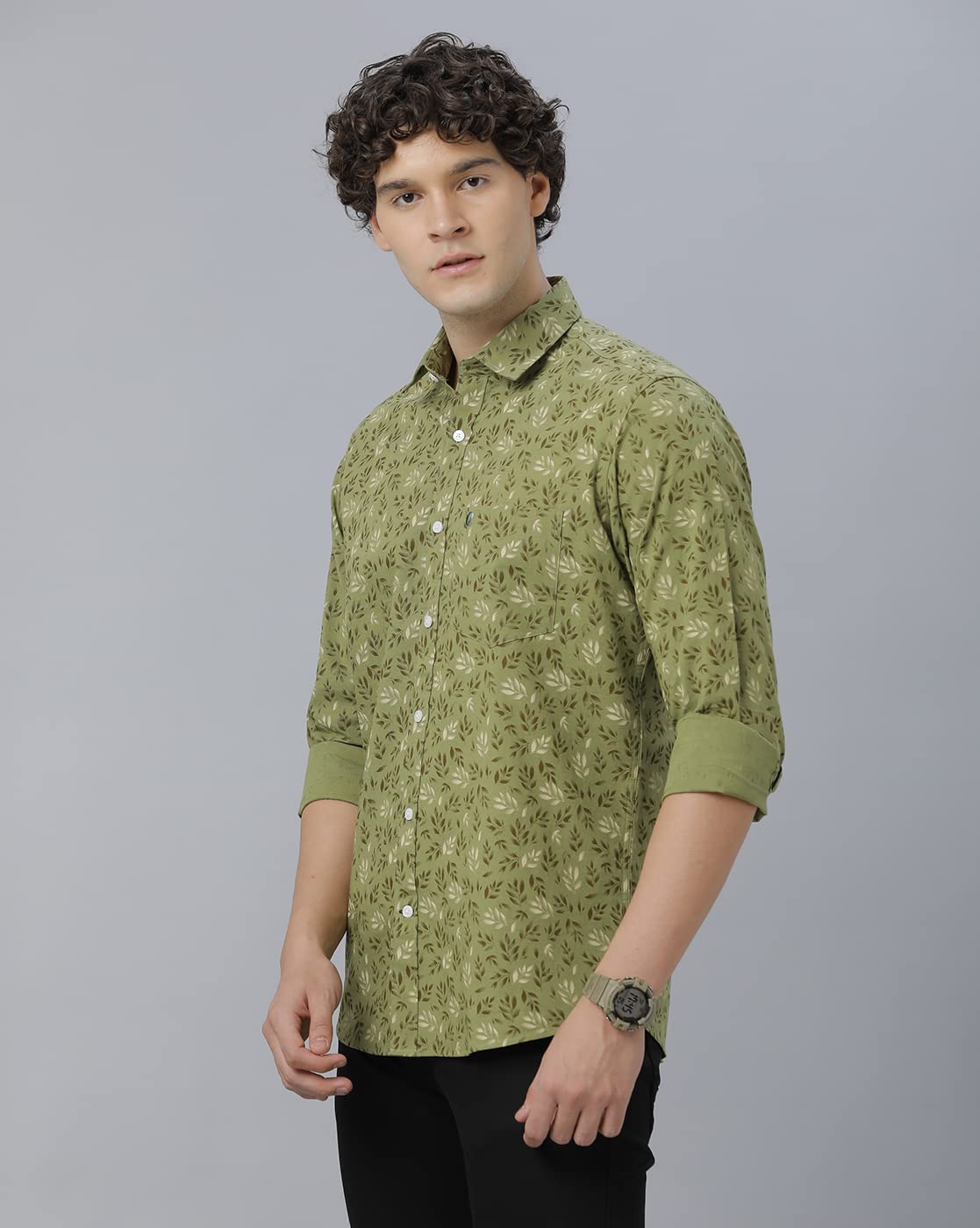 Cavallo by Linen Club Men’s Cotton Green Printed Slim Fit Full Sleeve Casual Shirt