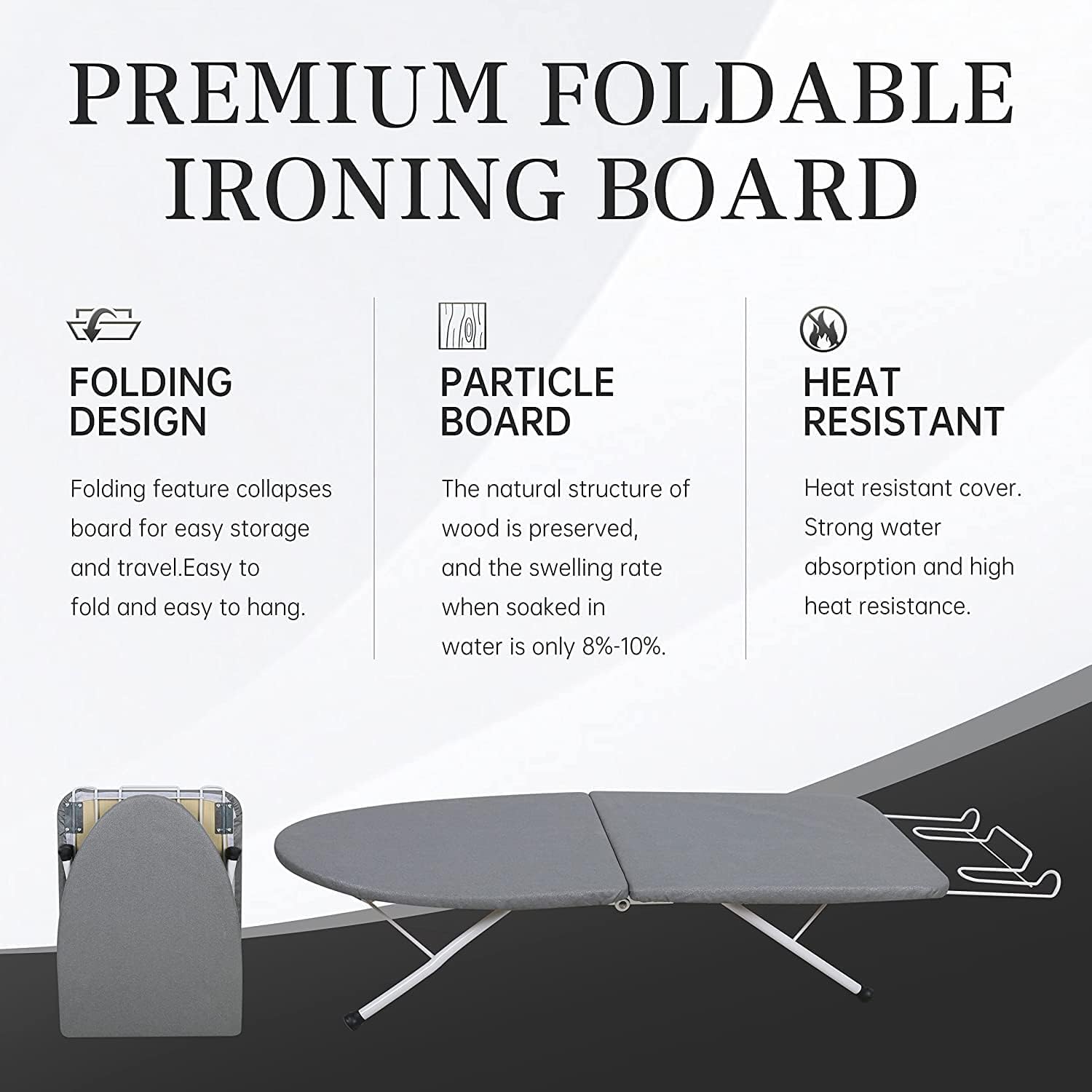 Multiple Uses The foldable ironing station is as functional as any other style. It can iron skirts, pants, shirts, very suitable for home, university or while traveling. Ideal for sewing, craft rooms or confined spaces. The portable tabletop iron board can also be used as a snack table or laptop desk on the bed.