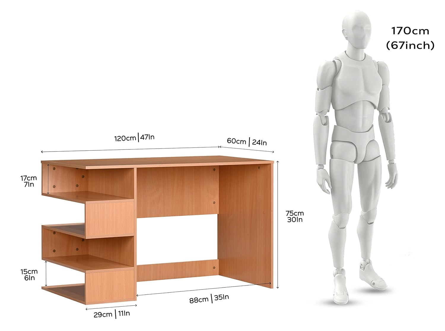 DeckUp Athena Engineered Wood Study & Computer Table and Office Desk (Bavarian Beech, Matte Finish)