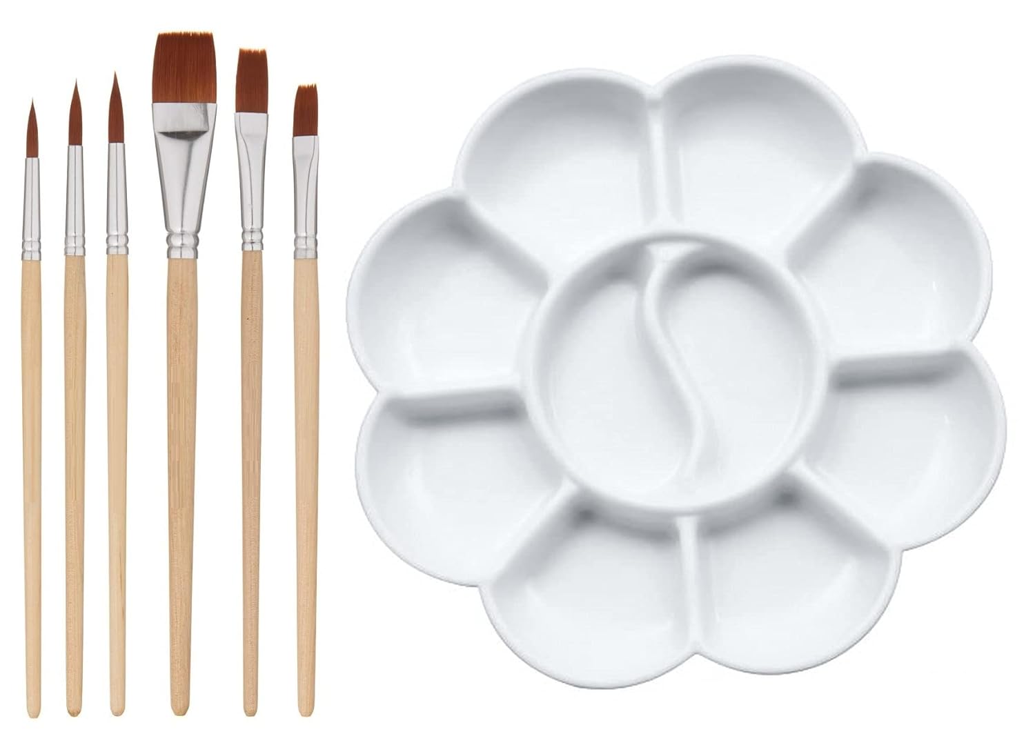 4.Package include 1Pcs Small FlowerPalette and 3Pcs Flat and 3Pcs Round Paint Brush