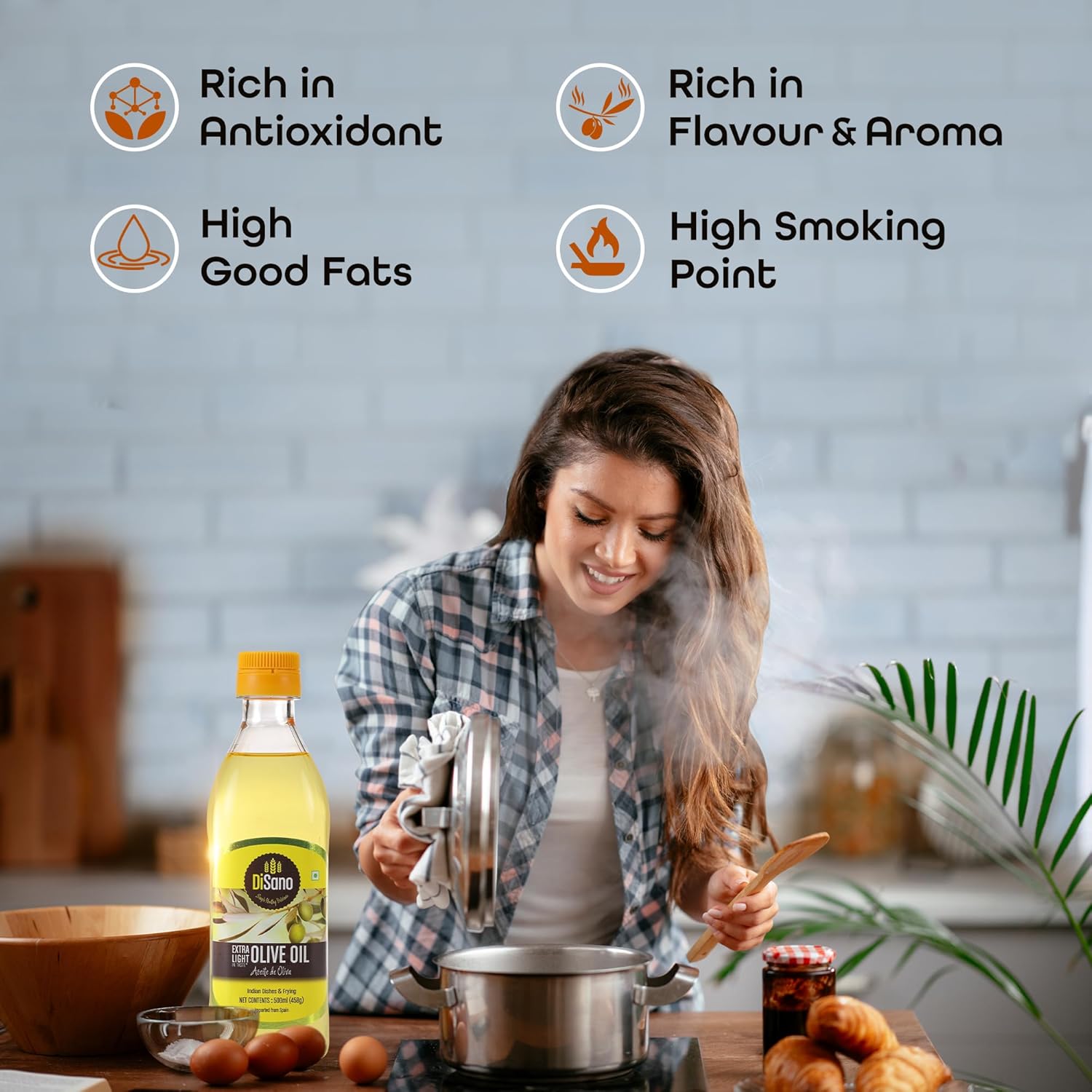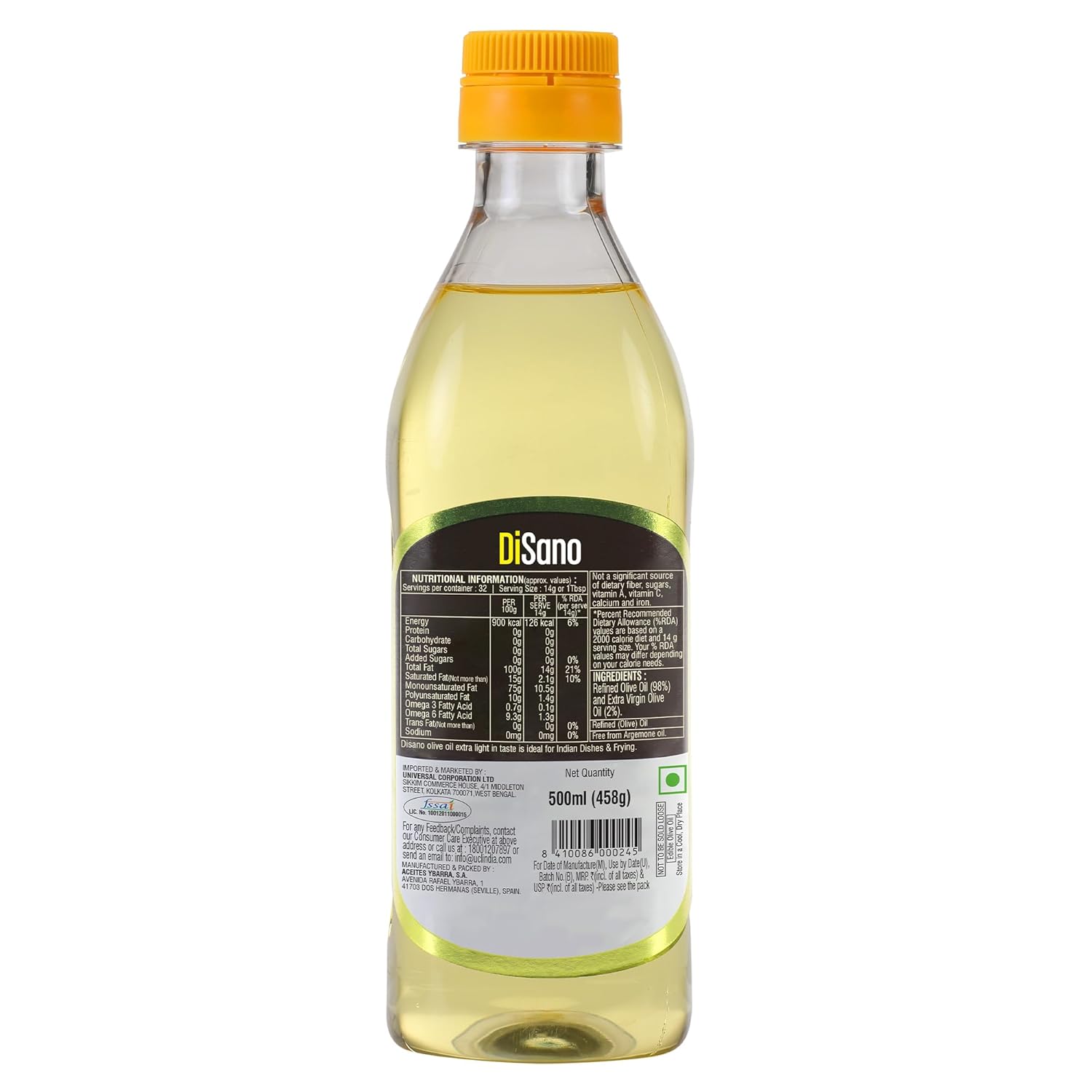 DiSano Extra Light Olive Oil has a neutral flavour and high smoking point, making it ideal for frying, baking, and everyday Indian cooking. It does not alter the taste of spices or recipes. Light and pure, this oil is great for high-heat cooking and helps retain the natural flavour of your dishes. A versatile choice for both daily meals and special recipes.