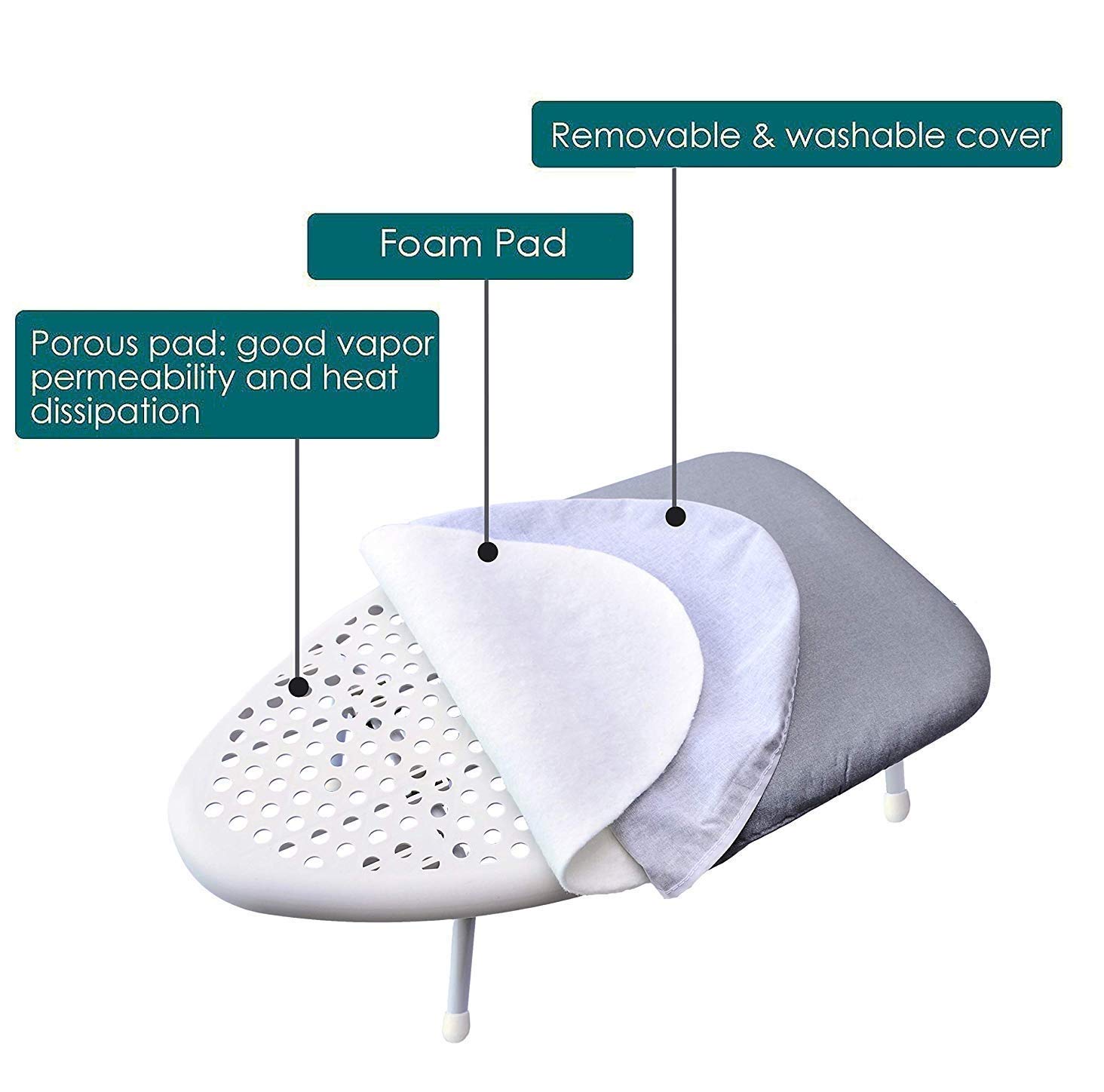 FOLDABLE – Folding tabletop ironing board fits into small places, amazing space-saving design